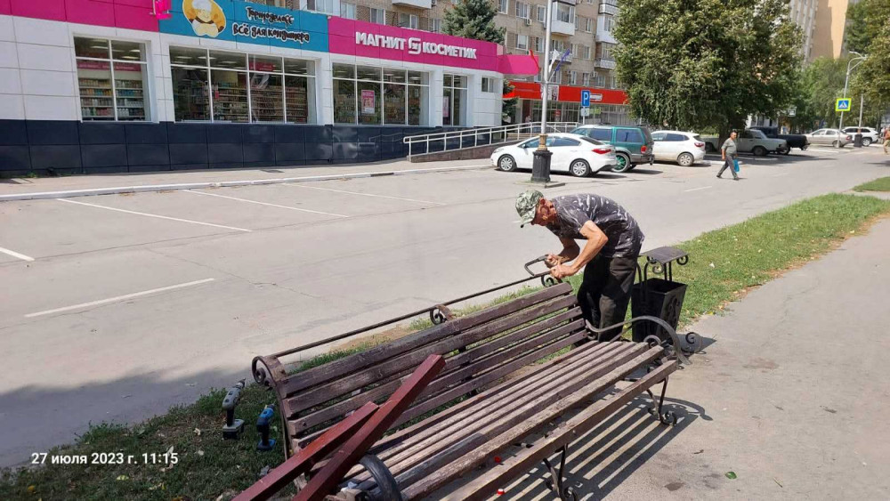 Восстановление уличных скамеек провели сотрудники департамента строительства и городского хозяйства (ДСиГХ). Три десятка таких МАФов были восстановлены в течение нескольких дней по поручению главы администрации Волгодонска Сергея Макарова. Градоначальник во время осмотра отремонтированного после действий вандалов подземного пешеходного перехода в новом городе обратил внимание на плачевное состояние скамеек. Часть сидений по проспекту Строителей были без перекладин, другая часть — разрисованы «уличными художниками» и потеряли привлекательный вид.