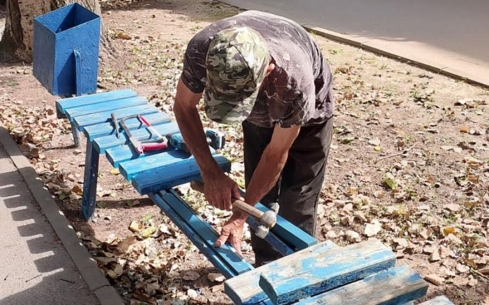 Сотрудники производственного отдела ДСиГХ выполнили ремонт и покраску скамеек на проспекте Строителей, в скверах Машиностроителей и «Юность». Подрядная компания «Созидатель» также отремонтировала все лавочки на ул. Ленина – об этом просили пожилые жители, часто присаживающиеся отдохнуть возле поликлиники №3 на ул. Ленина, 106. По мере формирования запасов бруса и краски будут приводить в порядок и другие уличные объекты. На придомовой территории МКД восстановлением скамеек занимаются управляющие компании.