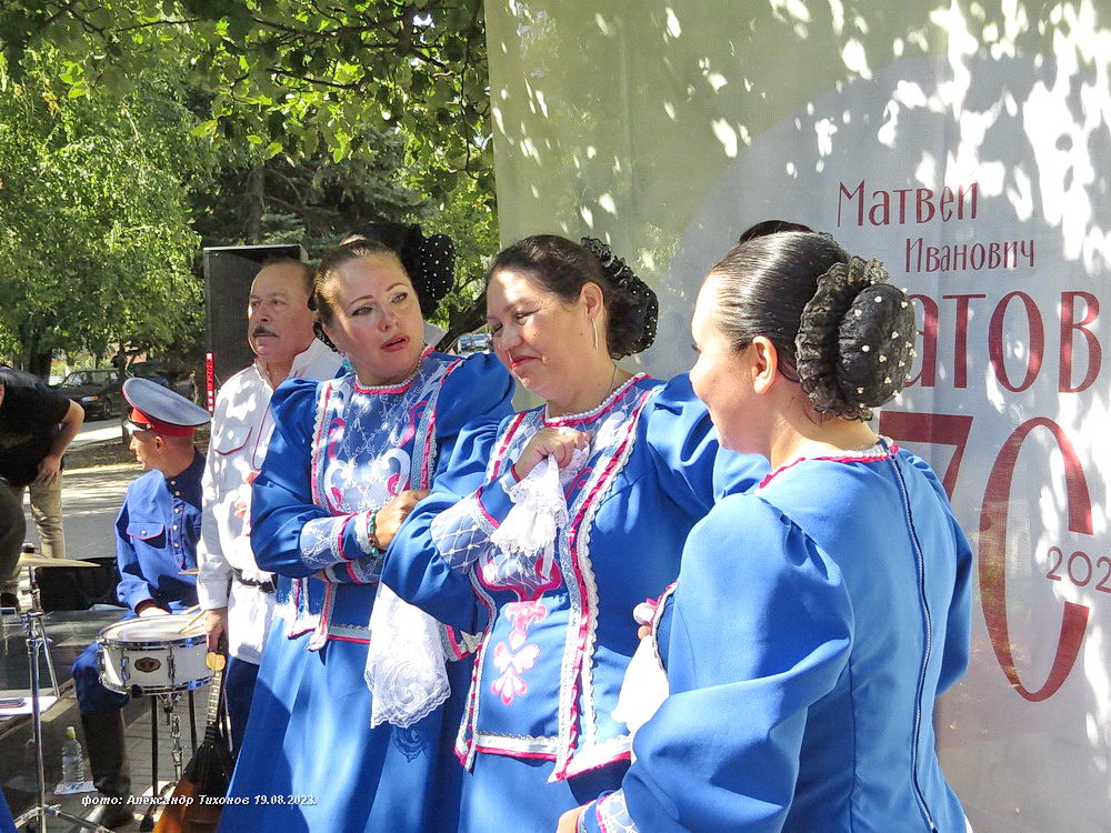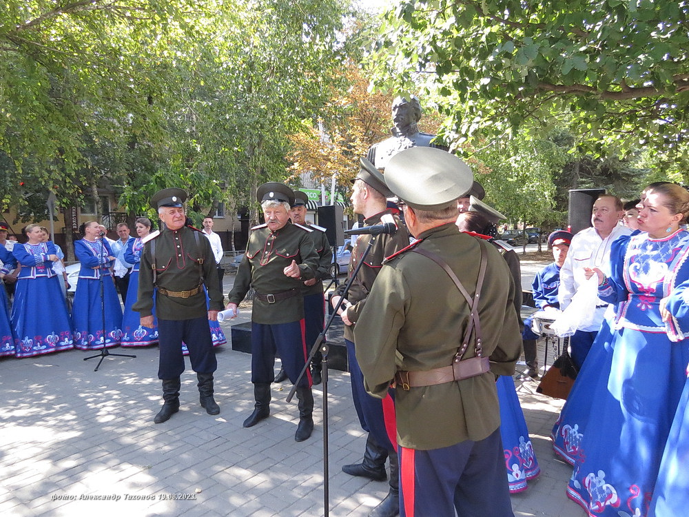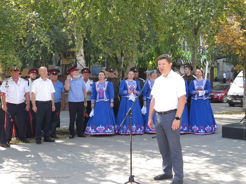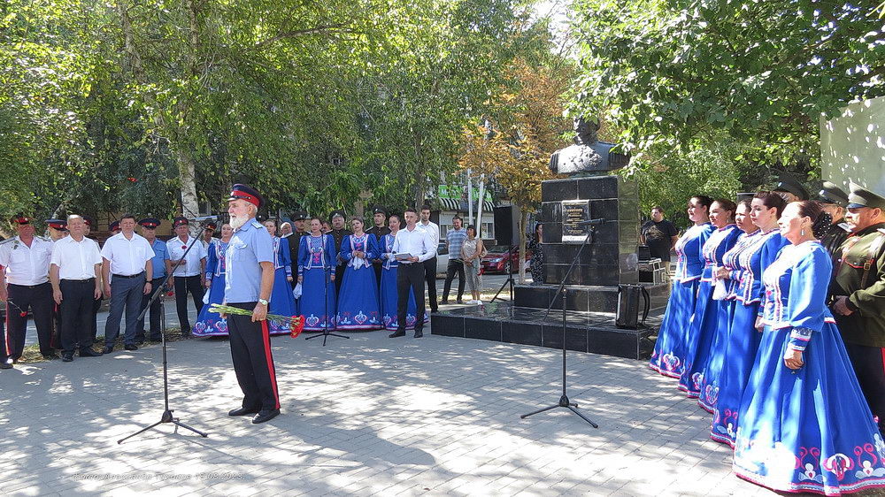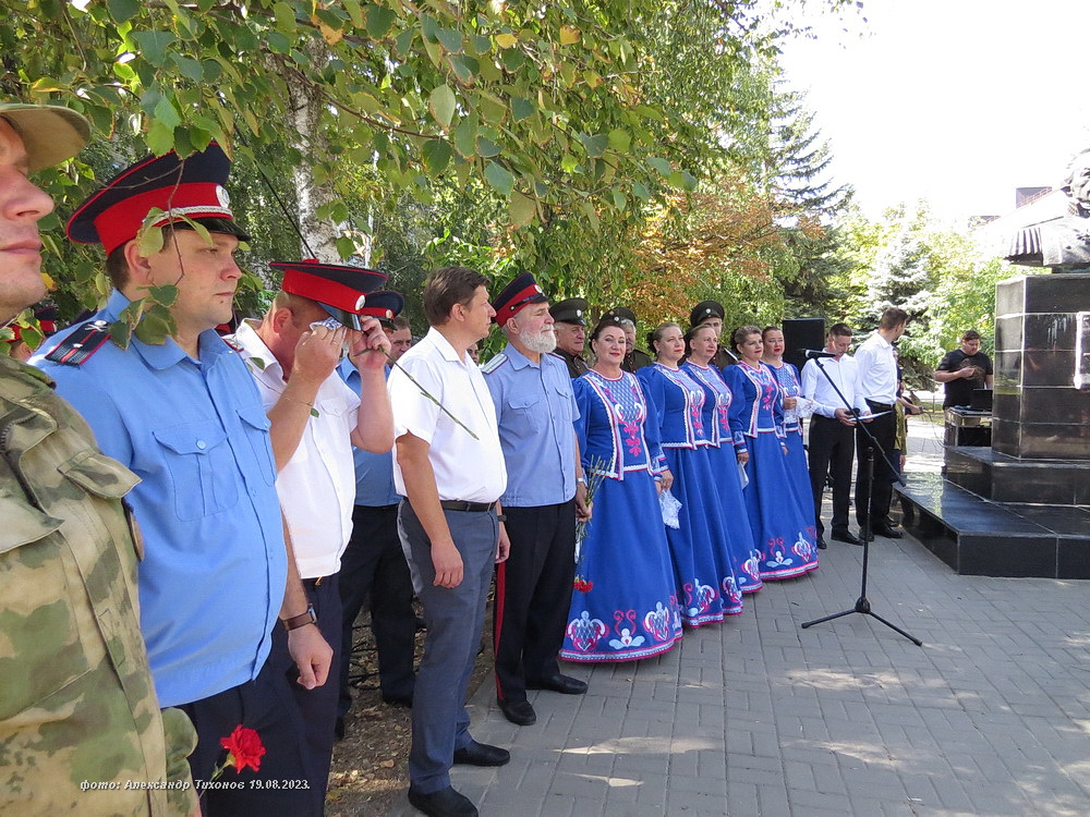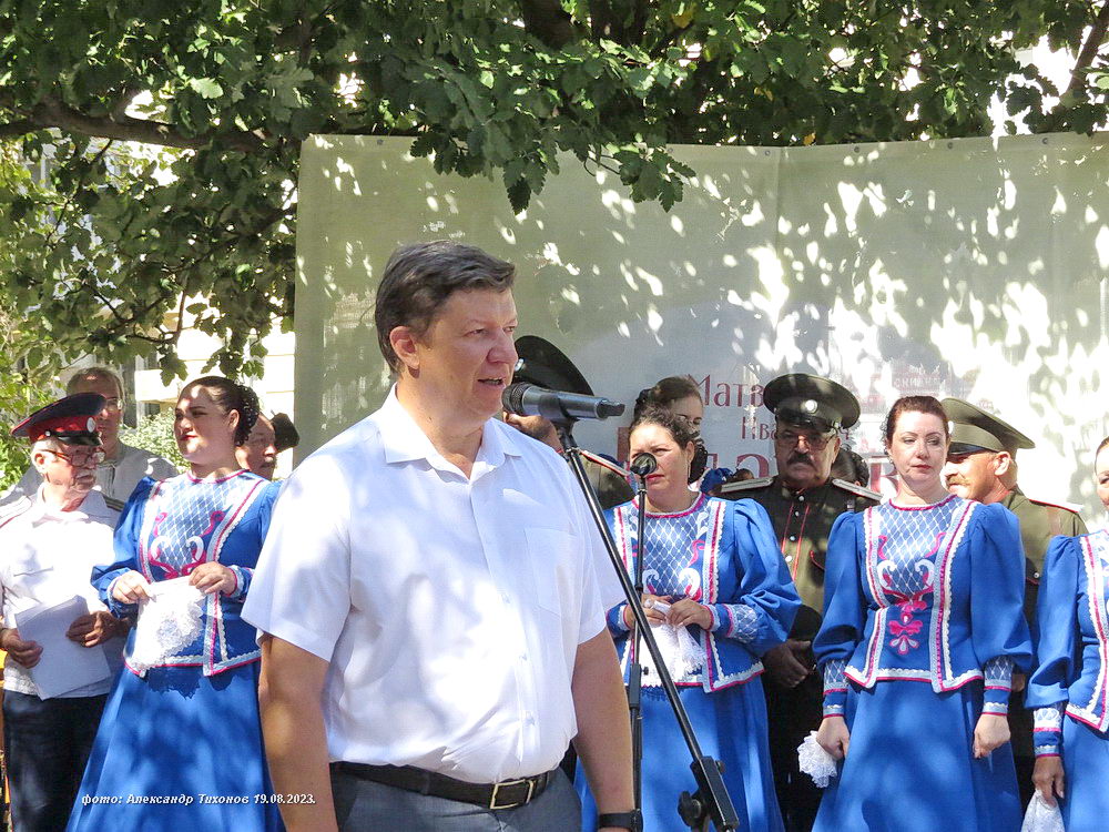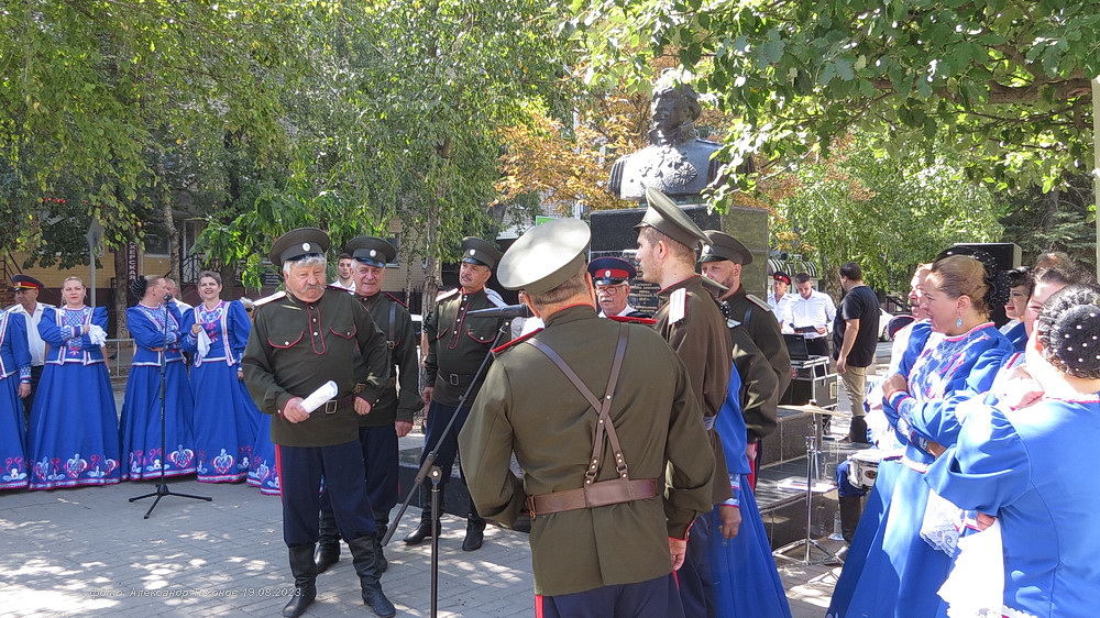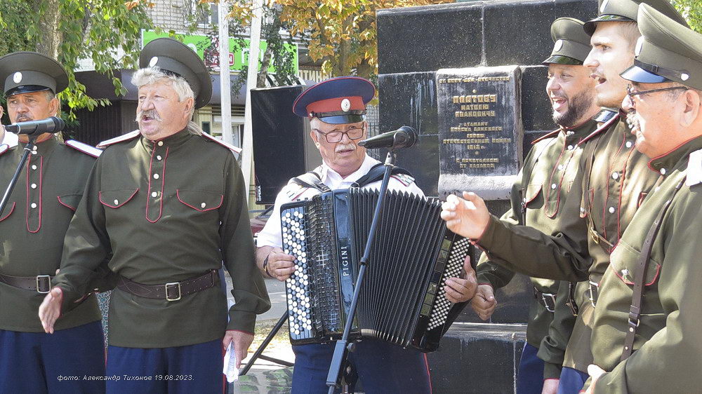 Сегодня, 19 августа 2023 года в сквере на пересечении улиц Ленина и 50 лет СССР была отмечена памятная дата: «270 лет со дня рождения атамана Всевеликого войска Донского, казачьего генерала М.И. Платова».