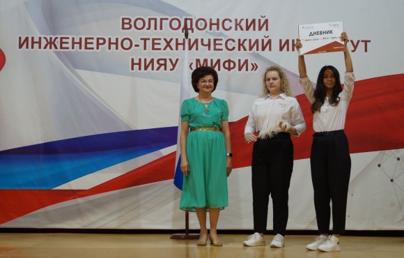 К участникам смены обратилась руководитель Волгодонского инженерно-технического института НИЯУ МИФИ, депутат Законодательного Собрания Ростовской области Валентина Руденко, рассказав о городе и вузе, о перспективах обучения в ядерном университете и возможностях дальнейшей реализации себя в профессиональной сфере. После чего поставила подпись в «Дневник лагеря», открыв таким образом смену.