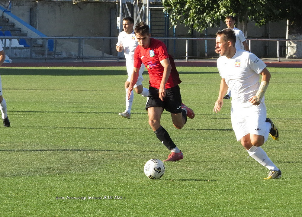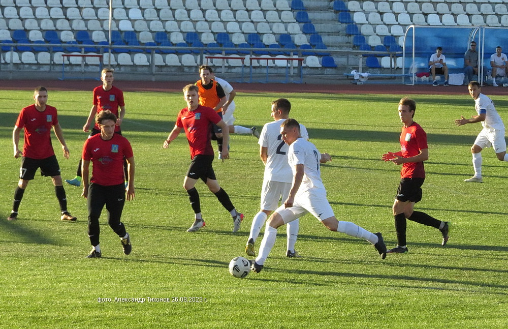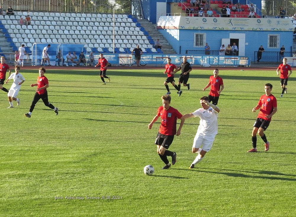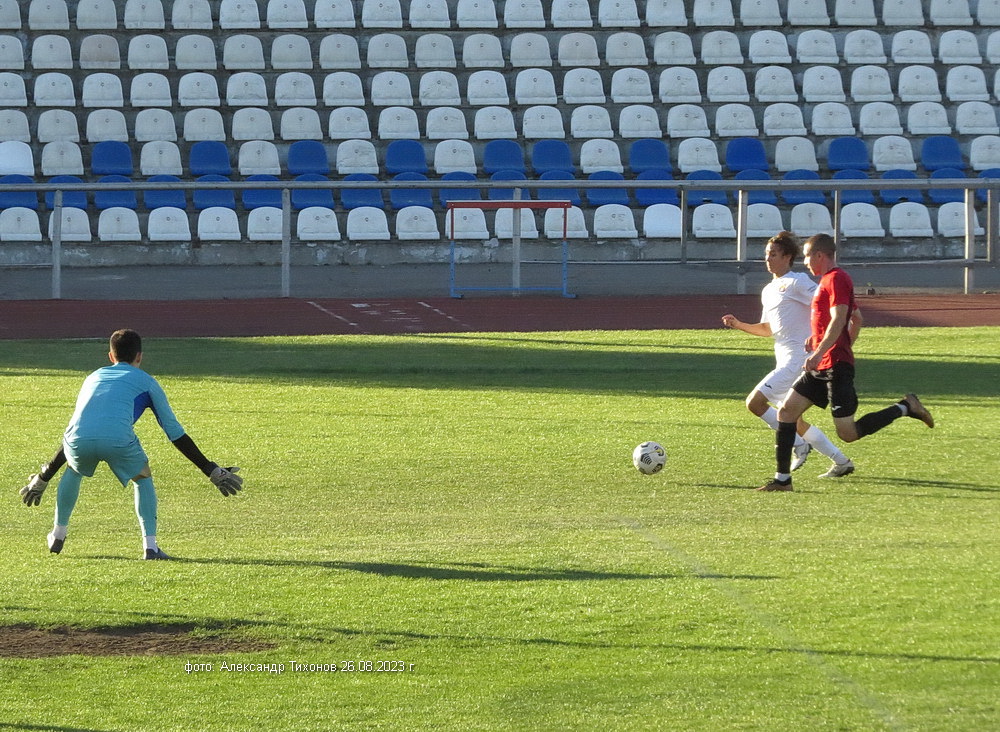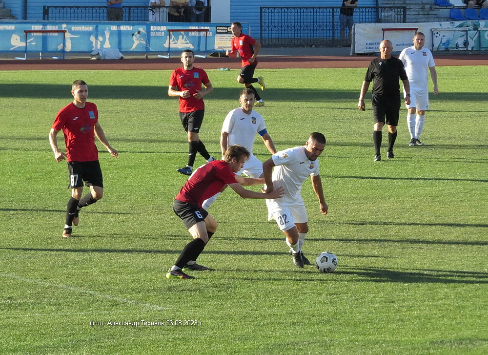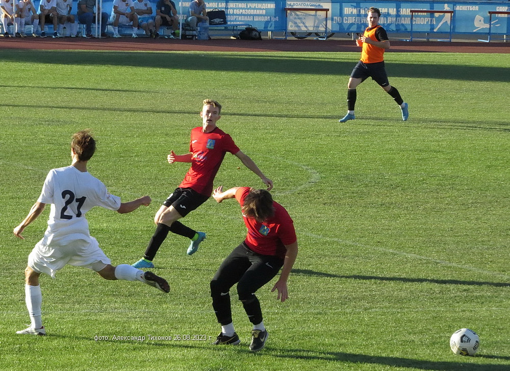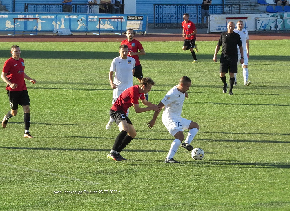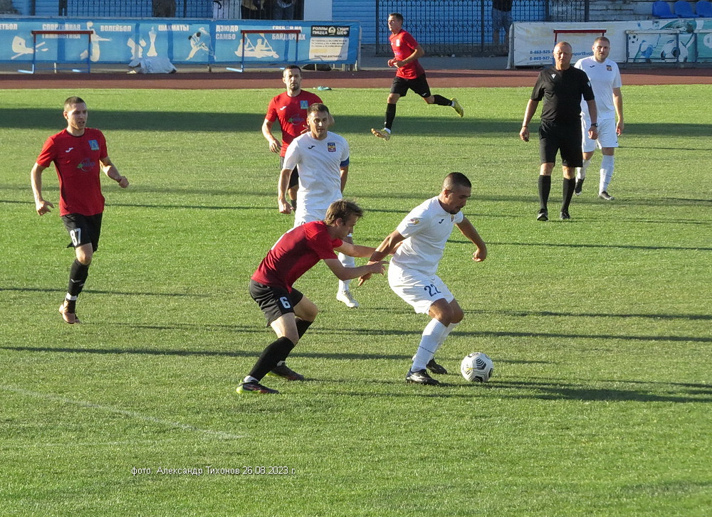 Первый тайм показал, что гости решили дать бой нашей команде. И это им почти удалось- игра была практически равной и на перерыв футболисты ушли при нулевой ничьей. Во втором тайме, видимо после бурного обсуждения в раздевалке итогов первого тайма волгодонские футболисты усилили игру и это сразу сказалось на результате. Забитый гол в ворота соперников добавил волгодонским футболистам уверенности, а тут ещё вышел на поле лучший бомбардир команды Александр Шкуркин и ребята заиграли. До конца второго тайма и всего матча именно Александр забил гостям ещё два гола. 3: 0 — с таким итогом завершилась эта игра.