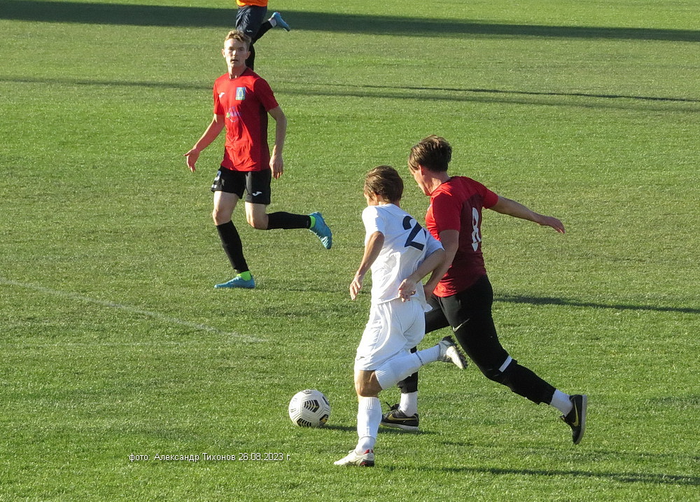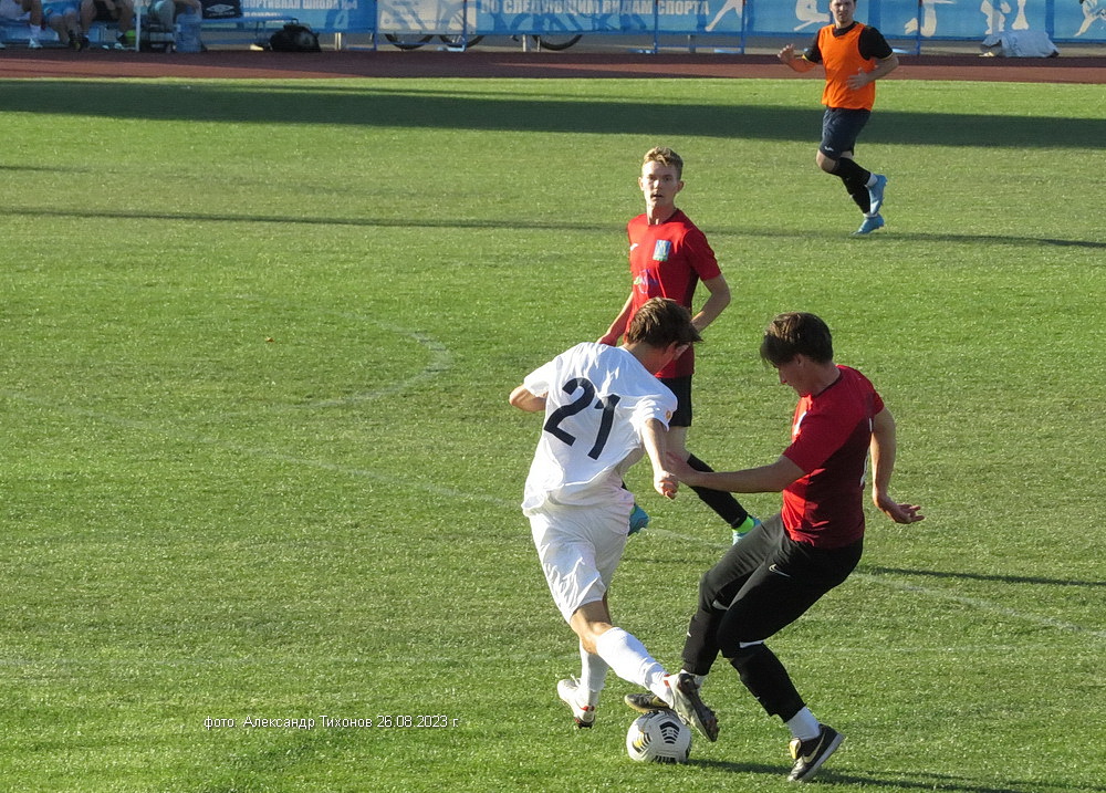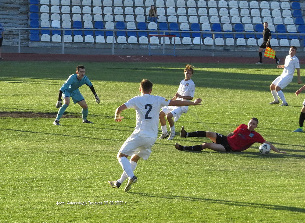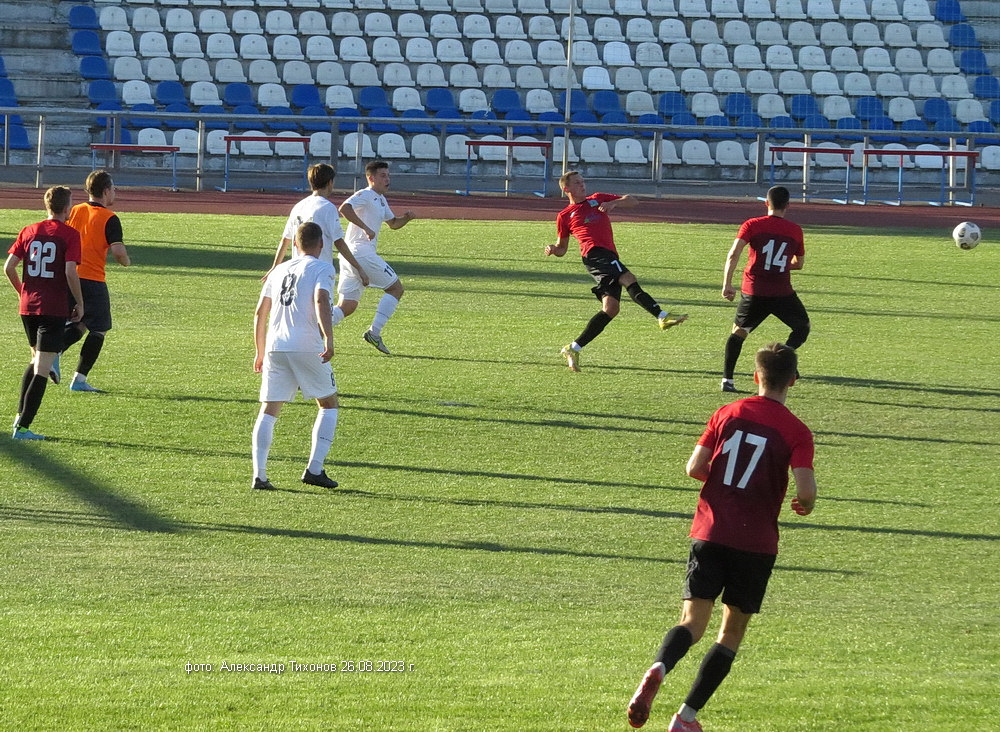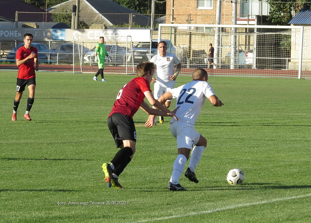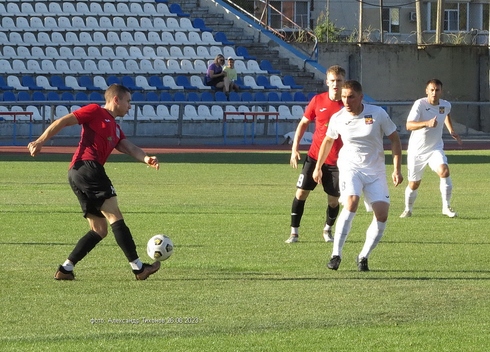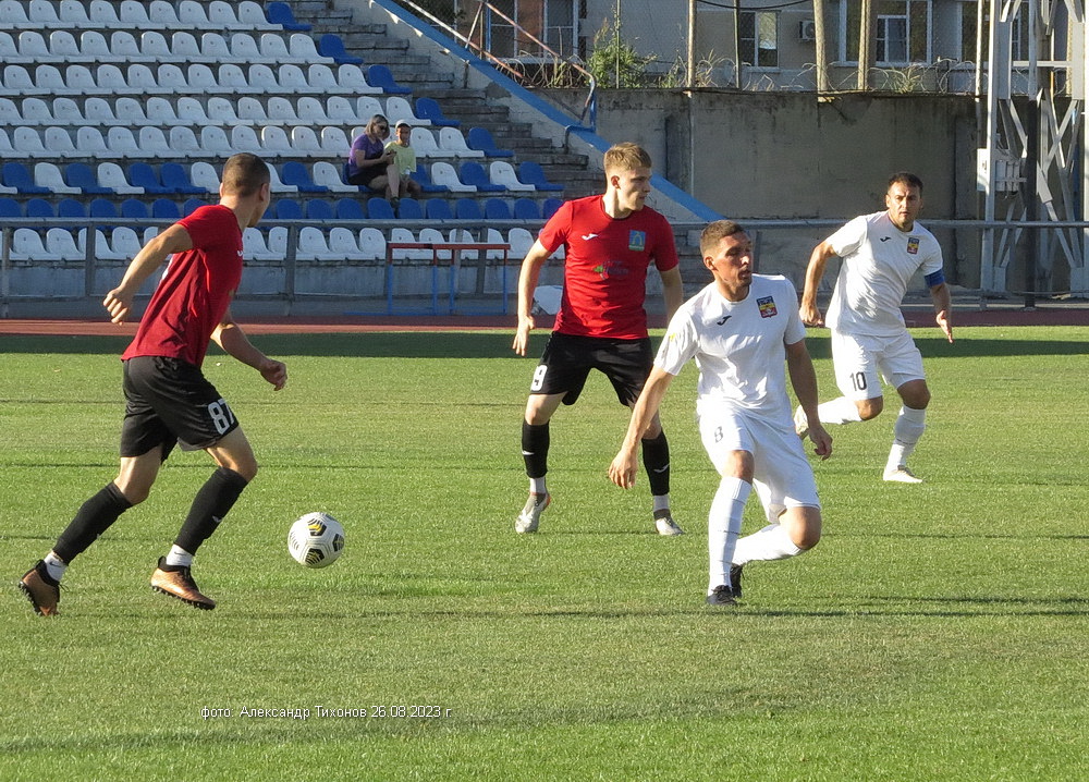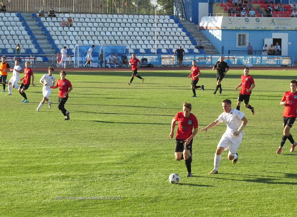 Первый тайм показал, что гости решили дать бой нашей команде. И это им почти удалось- игра была практически равной и на перерыв футболисты ушли при нулевой ничьей. Во втором тайме, видимо после бурного обсуждения в раздевалке итогов первого тайма волгодонские футболисты усилили игру и это сразу сказалось на результате. Забитый гол в ворота соперников добавил волгодонским футболистам уверенности, а тут ещё вышел на поле лучший бомбардир команды Александр Шкуркин и ребята заиграли. До конца второго тайма и всего матча именно Александр забил гостям ещё два гола. 3: 0 — с таким итогом завершилась эта игра.