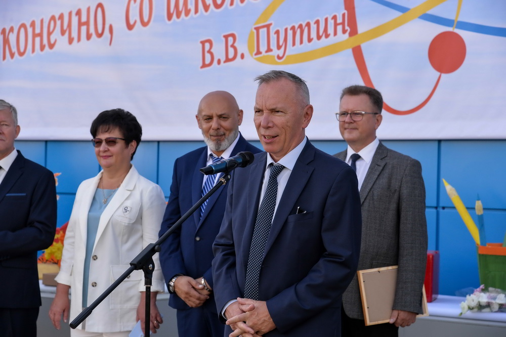 «Я поздравляю ребят с началом нового учебного года в новой современной школе и очень рассчитываю, что ее выпускники, получив в нашем опорном вузе ВИТИ НИЯУ МИФИ высшее образование и профессию инженеров, придут работать к нам — на Ростовскую атомной станцию. Сегодня мы вкладываемся в наше будущее и уверены, что готовим достойную смену», — отметил директор Ростовской АЭС Андрей Сальников.
