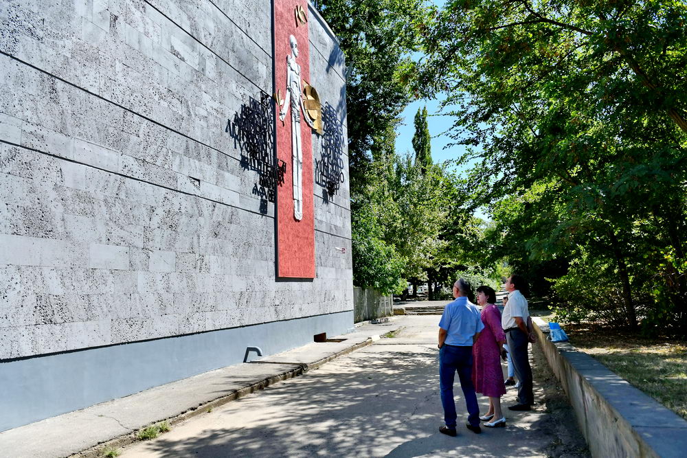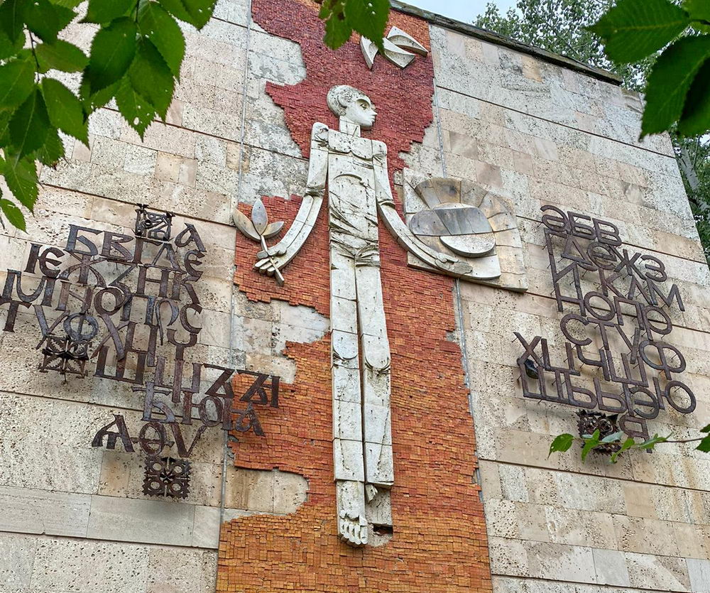 Еще при строительстве школы ее фасад украсили огромным декоративным панно. За годы без ремонта фасад обветшал, панно практически разрушилось, потеряв не только уникальность, но и просто эстетичность.