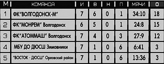 Турнирная таблица Открытого чемпионата Волгодонска