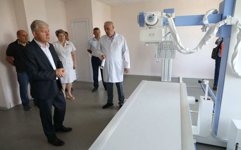На сегодняшний день подрядчик уже приступил к завершающей стадии работ второго этапа – укладывается плитка в фойе первого этажа, устанавливаются кондиционеры и мебель. Выполнен капремонт кровли, заменены все коммуникации, система вентиляции, произведен капитальный ремонт кабинетов, хозяйственных помещений и коридоров, установлена новая сантехника, заменены все окна и двери. Завезено новое высокотехнологичное оборудование – цифровой рентген-аппарат и маммограф. Совсем скоро специалисты Роспотребнадзора проведут замеры радиационного фона и дадут соответствующие разрешения на эксплуатацию данного оборудования. Часть персонала уже переехала в отремонтированные помещения — новые светлые кабинеты, работает лаборатория.