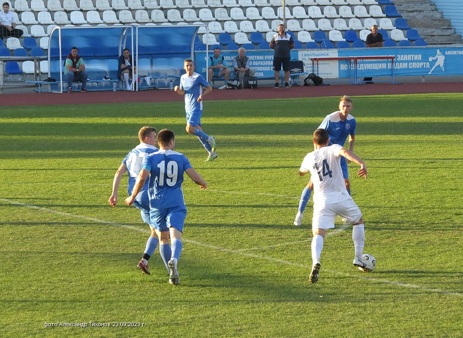 Уже в начале первого тайма «Волгодонск» открыл счёт — мяч в ворота гостей провёл Евгегний Мороз. Далее матч проходил с небольшим преимуществом волгодонской команды.