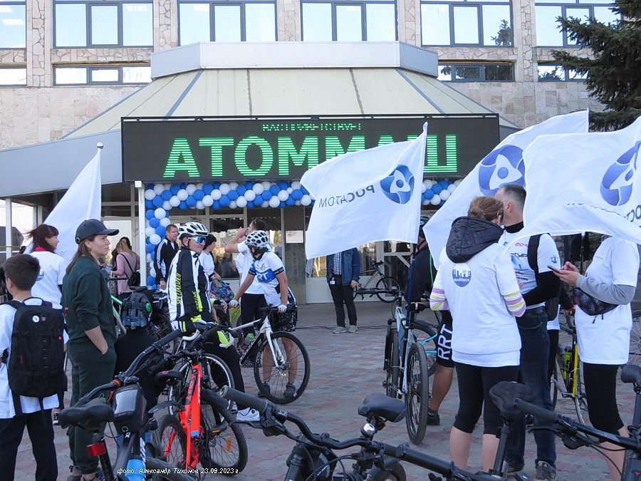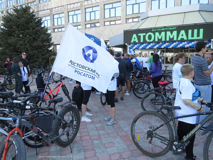 К 9 утра все желающие пооучаствовать в этом мероприятии собрались у монумента атомному реактору ВВЭР-1000 на Жуковском шоссе. После напутственных слов директора атоммаша Максима Жидкова и заместителя директора Ростовской АЭС Михаила Рябышева дан старт и сотни велосипедистов отправились по маршруту велопробега к проспекту Лазоревому.