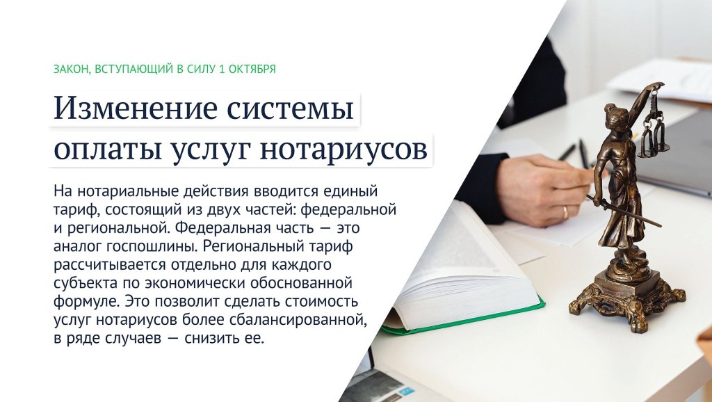 На нотариальные действия вводится единый тариф, состоящий из двух частей: федеральной и региональной. Федеральная часть — это аналог госпошлины. Региональный тариф рассчитывается отдельно для каждого субъекта по экономически обоснованной формуле. Это позволит сделать стоимость услуг нотариусов более сбалансированной, в ряде случаев — снизить ее.