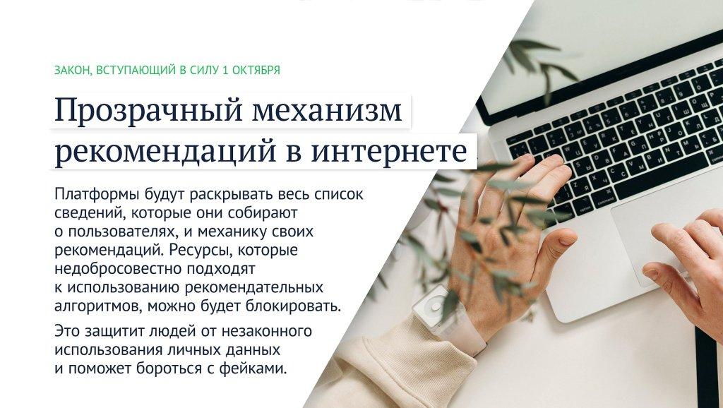 Платформы будут раскрывать весь список сведений, которые они собирают о пользователях, и механику своих рекомендаций. Ресурсы, которые недобросовестно подходят к использованию рекомендательных алгоритмов, можно будет блокировать. Это защитит людей от незаконного использования личных данных и поможет бороться с фейками.