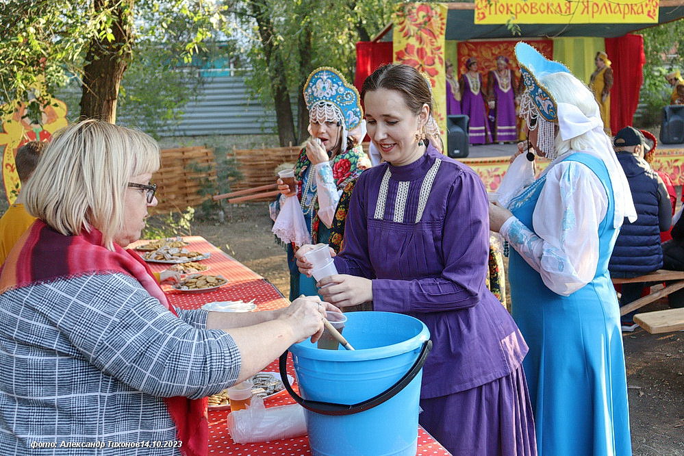 Горожанам была представлена театрализованная концертная программа из которой зрители могли узнать, как проходили Покровские посиделки, поучаствовать в народных хороводных играх и послушать песни в исполнении ансамблей народной песни.