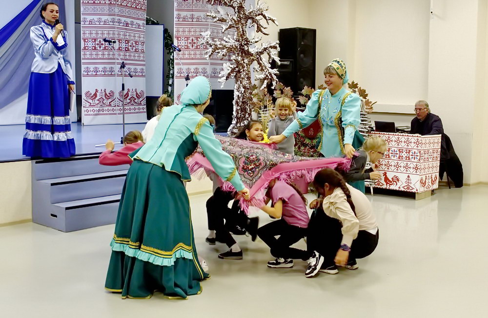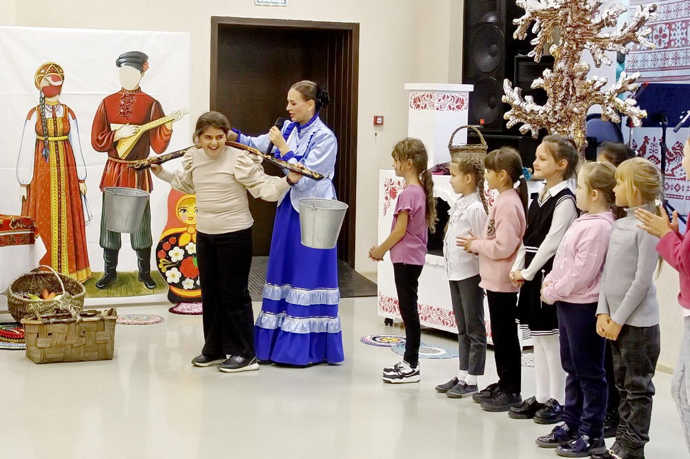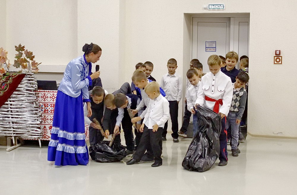 Мальчишек, по традиции, испытали на ловкость в игре «Дровишки». Девчонок ждали свои игры и испытания: дефиле с коромыслом, игра «Платок». Но на этом испытания не закончились, и ребята смогли показать себя еще и с творческой стороны, поучаствовав в игре на народных музыкальных инструментах. Один инструмент был особенно интересен детям, ведь это был аналог современного утюга – рубель.