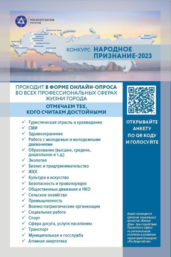 Конкурс «Народное признание» – это общегородское социально-значимое мероприятие, проводимое городской Общественной палатой и ООО «Центр социальных проектов «Белый Дом» при участии Концерна «РосЭнергоАтом» и поддержке органов государственной власти, а так же в партнерстве с коммерческими и некоммерческими организациями Волгодонска.