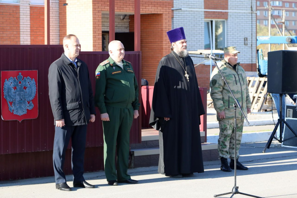 Перед будущими новобранцами с приветственным словом выступили заместитель Председателя Волгодонской городской Думы Игорь Батлуков, военный комиссар города Волгодонска Геннадий Терещенко, руководитель отдела Волгодонской епархии по связи с вооруженными силами, настоятель храма Святой преподобной Мученицы Великой Княгини Елисаветы, духовник войсковой части 3504 — протоиерей Михаил Горбачев.