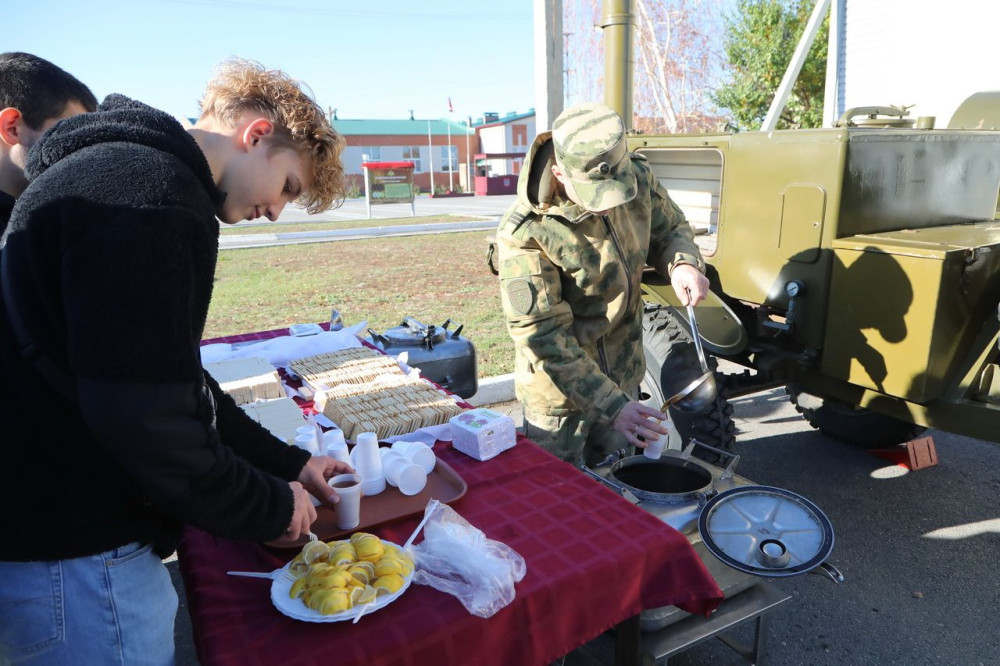 В рамках праздника для школьников и студентов служащими войсковой части была организована экскурсия по территории, вниманию участников представлены армейский быт (воинское расположение) и военная техника. Ребята даже смогли примерить защитное от химической и радиационной опасности снаряжение. Для гостей продемонстрированы боевая техника и оружие.