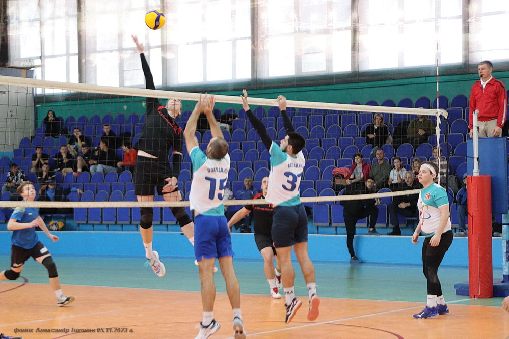 В СК «Олимп» продолжается открытый чемпионат города по волейболу среди мужских команд. Уже сыграна половина матчей предварительного этапа в двух группах.