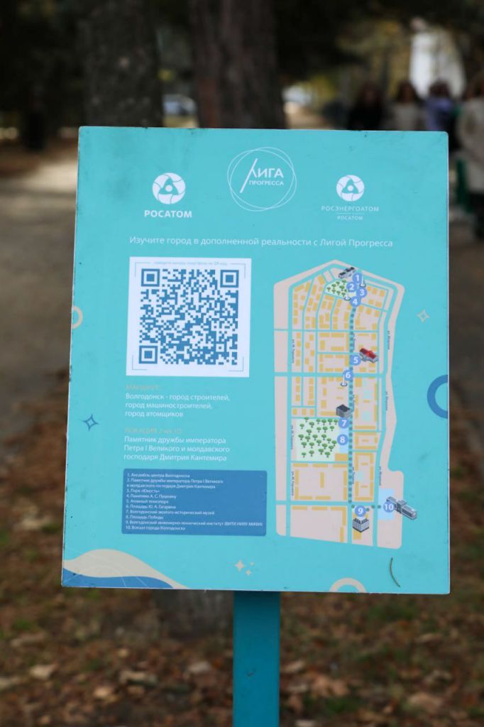В рамках экскурсии можно увидеть знаковые места Волгодонска в дополненной реальности. Интерактивная экскурсия состоит из 10 локаций, на каждой из которых установлены информационные стенды с QR-кодами. Сканируя коды с помощью смартфона, можно увидеть знаковые места Волгодонска с дополненной реальностью.