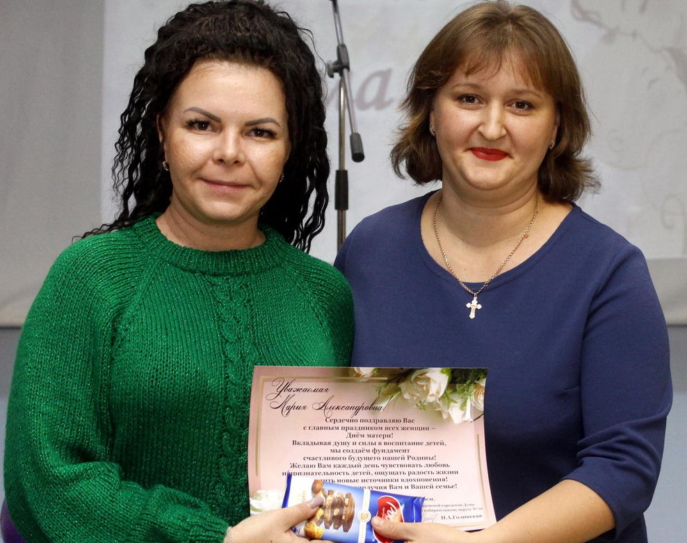 Теплые слова благодарности мамам прозвучали от Ольги Валерьевны Корневой, помощника депутата Волгодонской городской Думы по 10-му избирательному округу. Ольга Валерьевна поздравила женщин с праздником и вручила женщинам-матерям благодарственные письма депутата Волгодонской городской Думы по избирательному округу №10 Натальи Александровны Голинской.