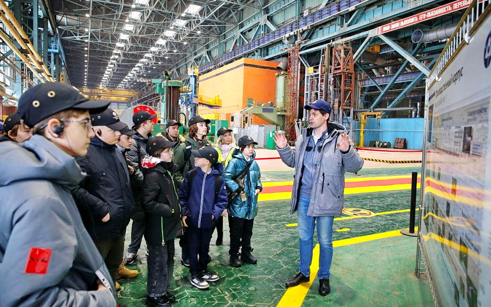 На экскурсии ребятам рассказали, как изготавливают атомные реакторы и парогенераторы, показали процесс горячей штамповки колен главного циркуляционного трубопровода, рассказали о современных технологиях производства.