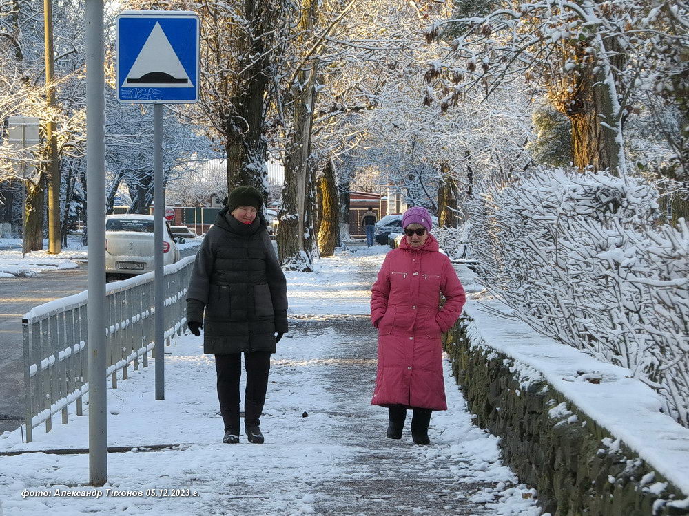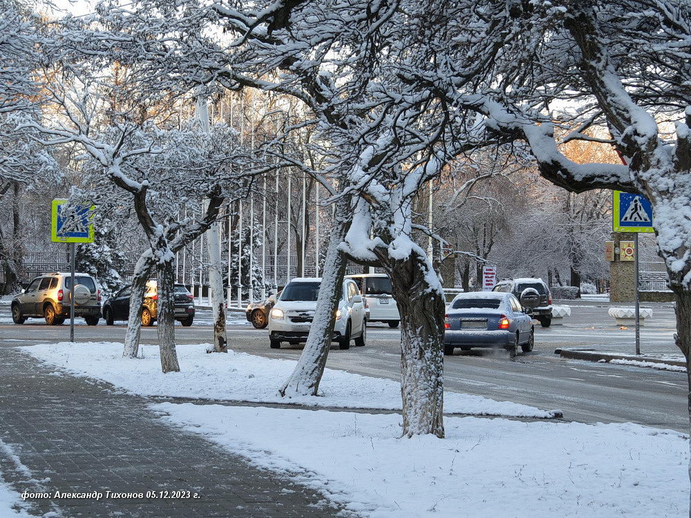 Еще вчера с вечера пошёл дождь. Ближе к ночи — снег с дождём. Под утро лёгкий морозец и вот на улицах гололёд.С утра выглянуло солнышко и должно быть к обеду потеплее и опять будет слякоть. Ну а пока — зима и на улице снег!