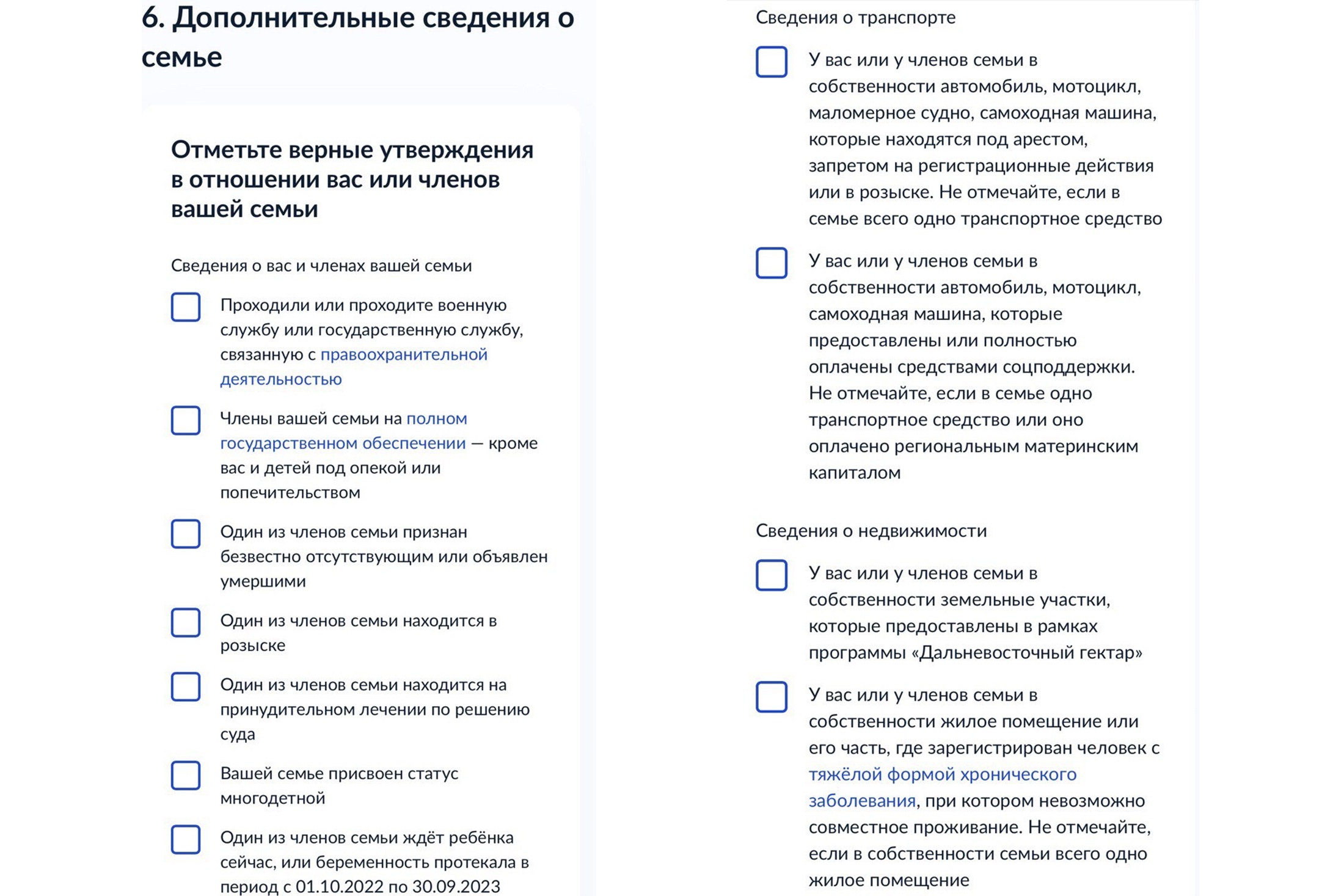 - Предоставить дополнительные сведения о вашей семье, недвижимости и транспорте и т.д. (Рисунок 4) — для этого нужно выбрать пункты из списка.