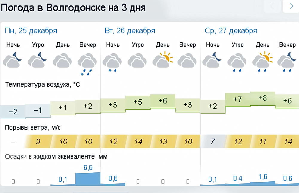 Прогноз погоды с 25 и 29 декабря по данным цимлянской метеостанции.