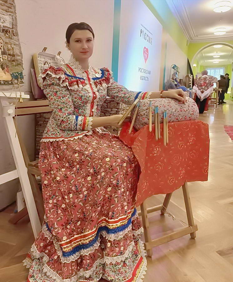 Мастера любительского объединения «Таланты Волгодонска» Анна Сельдюкова и Олег Миргородский из города Волгодонска продемонстрировали своё ремесло и провели для желающих мастер-классы по традиционным прикладным искусствам: кружевоплетение на коклюшках и кузнечное дело.