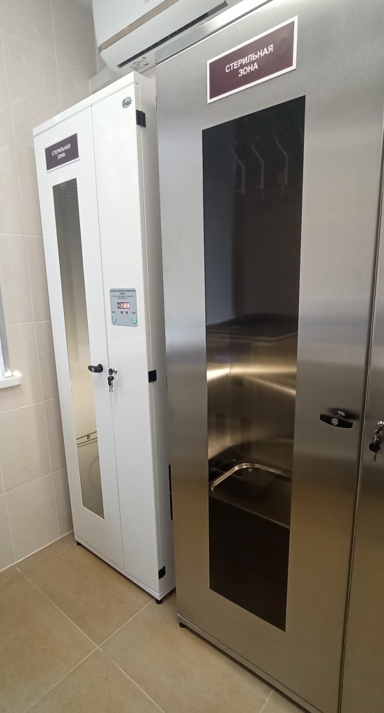 Оборудование уже практически полностью смонтировано, остался только фиброгастроскоп –современный аппарат фирмы Пентакс, который, к счастью, уже приехал в Россию и проходит таможенные процедуры. Так что в БСМП, можно сказать, вздохнули спокойно. Буквально со дня на день он приедет в Волгодонск и будет установлен на «штатное место». В кабинете появились также современные установки для стерилизации, сушки и хранения эндоскопов в стерильных условиях.