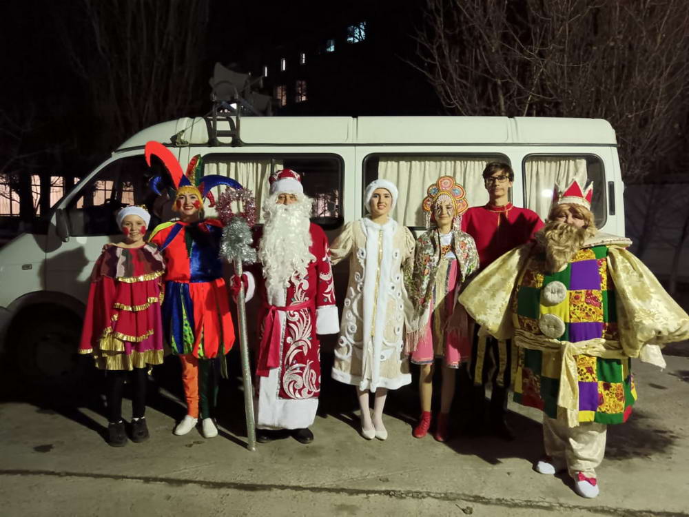 28 декабря, герои русских сказок вместе с Дедом Морозом и Снегурочкой отправились в мини-путешествие на транспортном средстве по территории города Волгодонска, поздравляя детей с наступающим Новым годом.