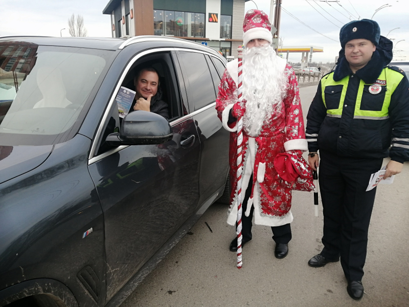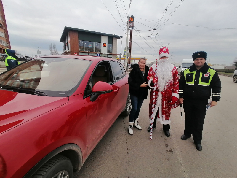 Сотрудники Госавтоинспекции вместе с Дедом Морозом поздравили участников дорожного движения с наступающим Новым годом, пожелали новогоднего настроения, соблюдения Правил дорожного движения и безопасных дорог.