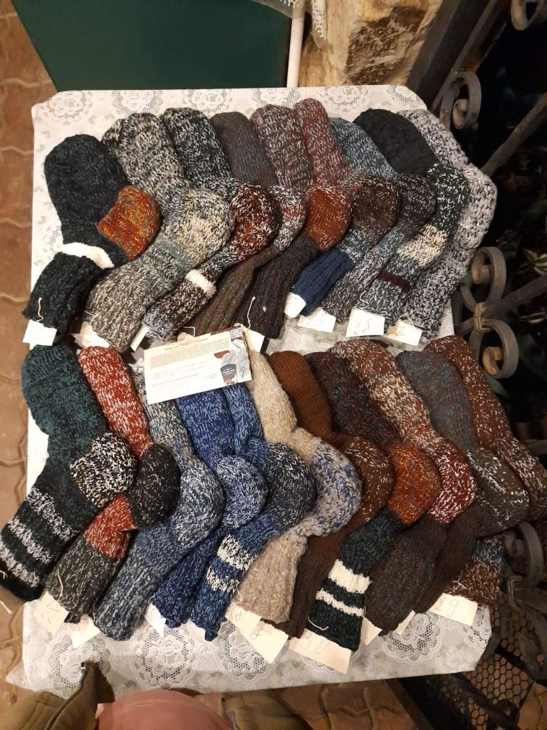 — К нам приходят две подруги-пенсионерки – Вера Ивановна и Надежда Ивановна. Любую работу выполняют быстро и очень тщательно. Формируют вот такие «сухие души», фасуют витаминные сухпайки( пакетики с сухофруктами и орехами), делают фруктовые и овощные заготовки, — рассказывает Татьяна Григорьевна. — А недавно пришла еще одна пожилая женщина, Таисия Петровна, принесла в иконную лавку храма Василия Блаженного (с ним фонд «БлагоДарение» тесно сотрудничает) двадцать пар связанных ею шерстяных носков. Пряжу купила на пенсию и к каждой паре прикрепила картонную бирочку с размером носков и пожеланиями каждому бойцу. И пожелания – не повторяющиеся, все разные. Было, правда, одно общее для всех – стихотворение-молитва: «Храни вас Господь на трудном пути, домой чтоб все вы сумели дойти…»