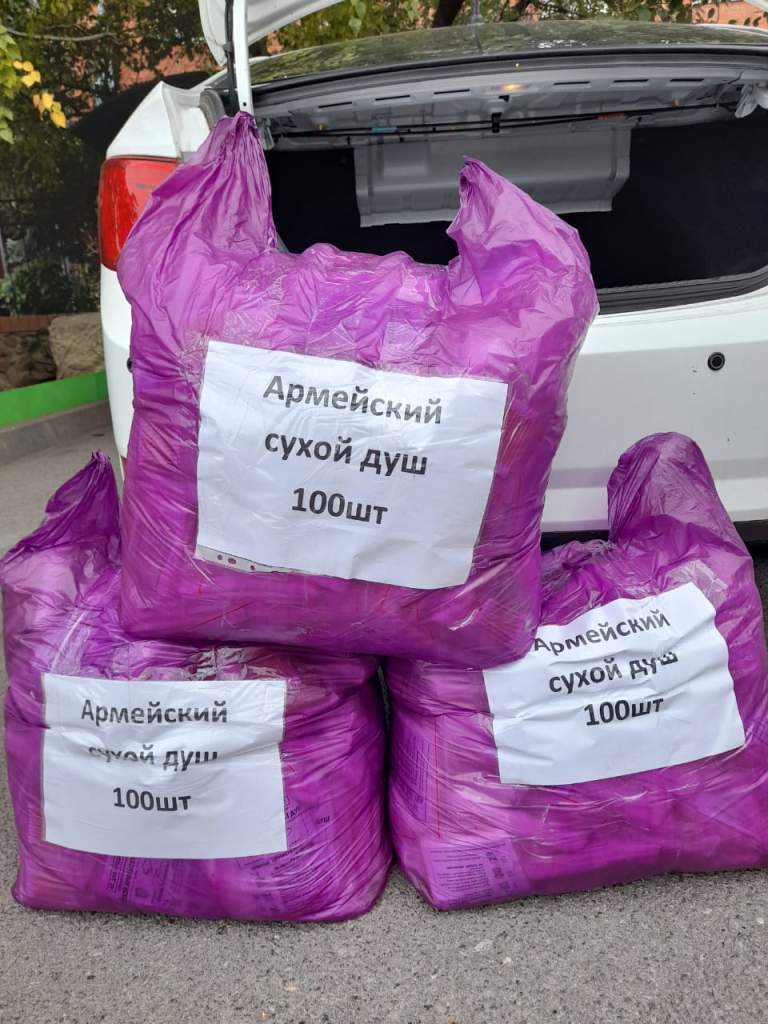 — А, это будущий «армейский душ» — отвечает на мой вопросительный взгляд Татьяна Горчанюк. – Мы отправили таких комплектов в зону СВО более трех тысяч…