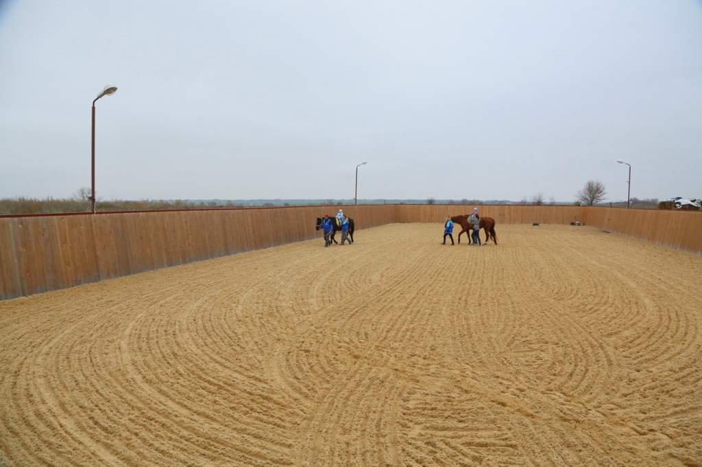 В 2014 году был построен манеж площадью 1200 кв.м, отвечающий всем современным требованиям – с котлованом метровой глубины, дренажной системой с отводными каналами для осадков, автополивом, гидроизоляцией. Манеж заполнен крупным волжским песком, а ограждает его мощная металлоконструкция 2-метровой высоты, обшитая изнутри доской. Ограждение – сложное инженерное сооружение – изготовили специалисты «Атоммаша».