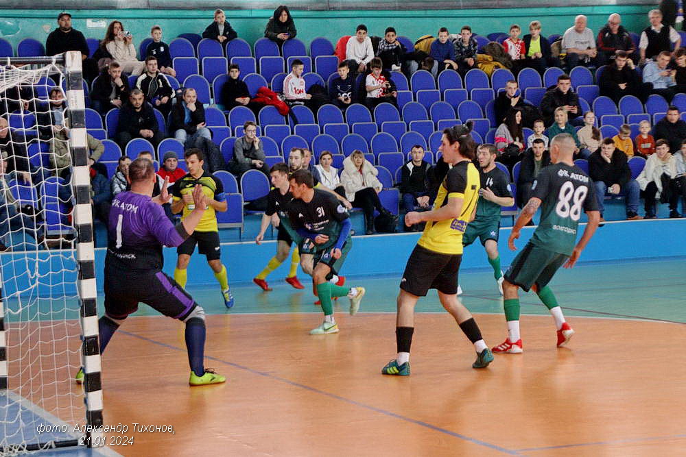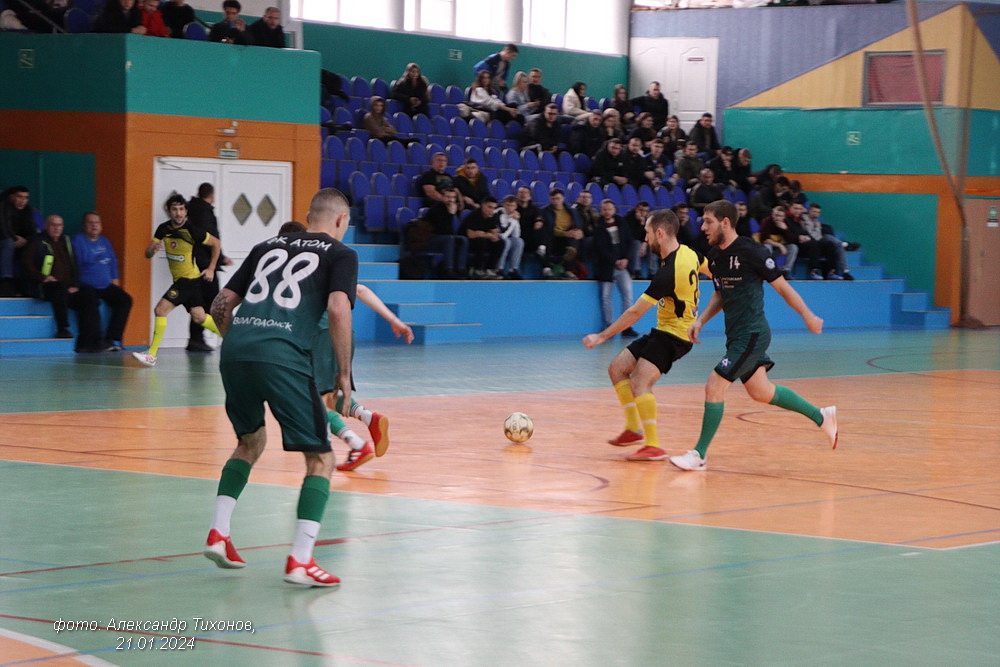 В заключительном матче дня встретились волгодонские команды «Рубин» и «Атом». Очень интересная и напряжённая игра вывела в победители команду «Атом» — 5:1. Счёт не по игре. Но и в этом матче проигрывая после первого тайма 0: 2 «Рубин» стал менять вратаря на полевого игрока. Но в отличии от предыдущего матча игроки «Рубина» только раз поразили ворота соперника. Зато футболисты «Атома» трижды попали в пустые ворота. В итоге и победили со счётом 5:1.