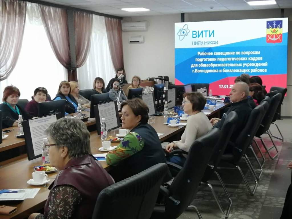 ВИТИ НИЯУ МИФИ и Управление образования Волгодонска организовали совещание с участием руководителей и представителей вуза и ГорУО, директоров школ Волгодонска и Цимлянска. Они обсудили важные и острые темы на площадке ВИТИ, где второй год обучают преподавателей математики и готовы принять желающих стать преподавателями физики и информатики.