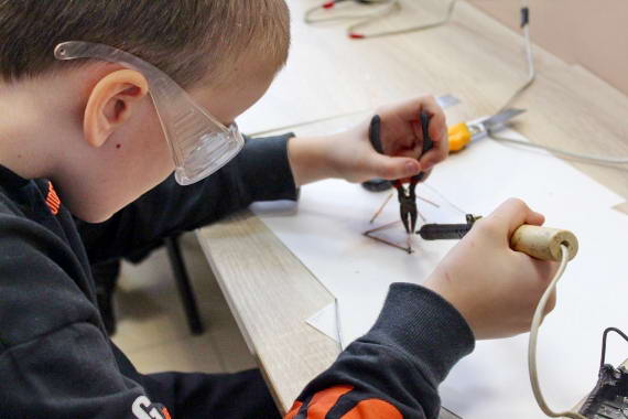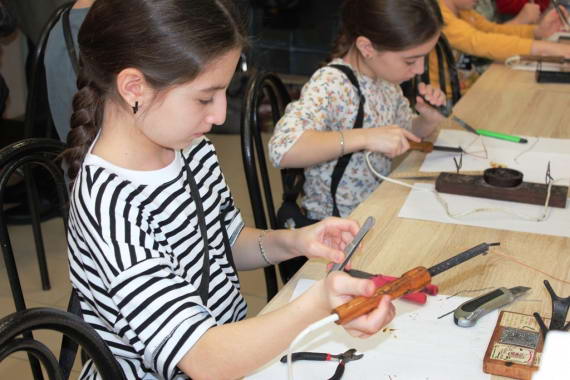 Забегая вперед отметим, что школьницы решили попробовать себя и в задании для старшей возрастной группы – собрать электронное устройство «Светодиодный симметричный мультивибратор на транзисторах», но «немного запутались в схеме». Обещали разобраться, провести работу над ошибками, тем более сейчас они заняты другим делом: собирают дома светящиеся юлу и сердце. Да и в будущем, по словам сестер, умение паять им пригодится: починить игрушку, смастерить что-то.