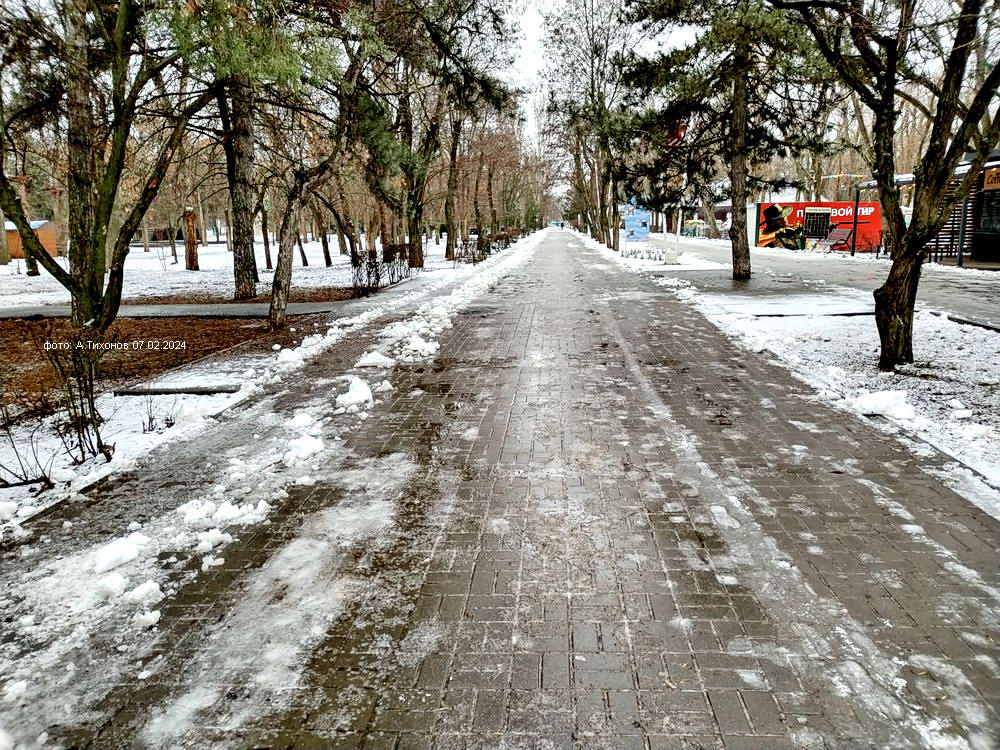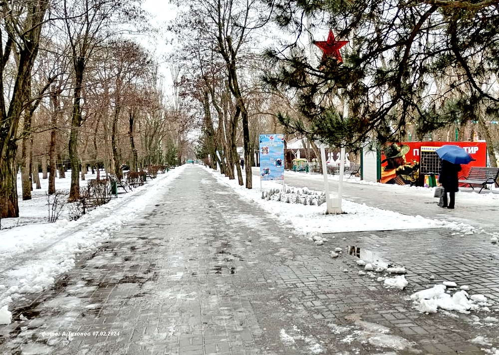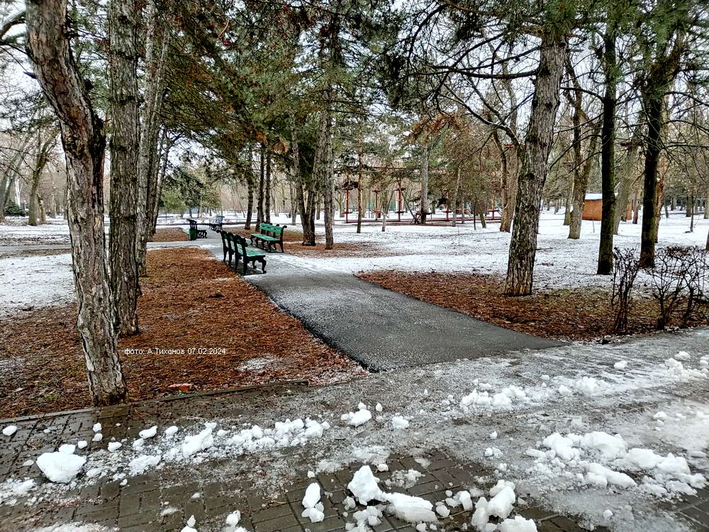 Чистить или не чистит выпавший снег? В парке Победы решили почистить дорожки. Может, зря, ведь к обеду всё растает.