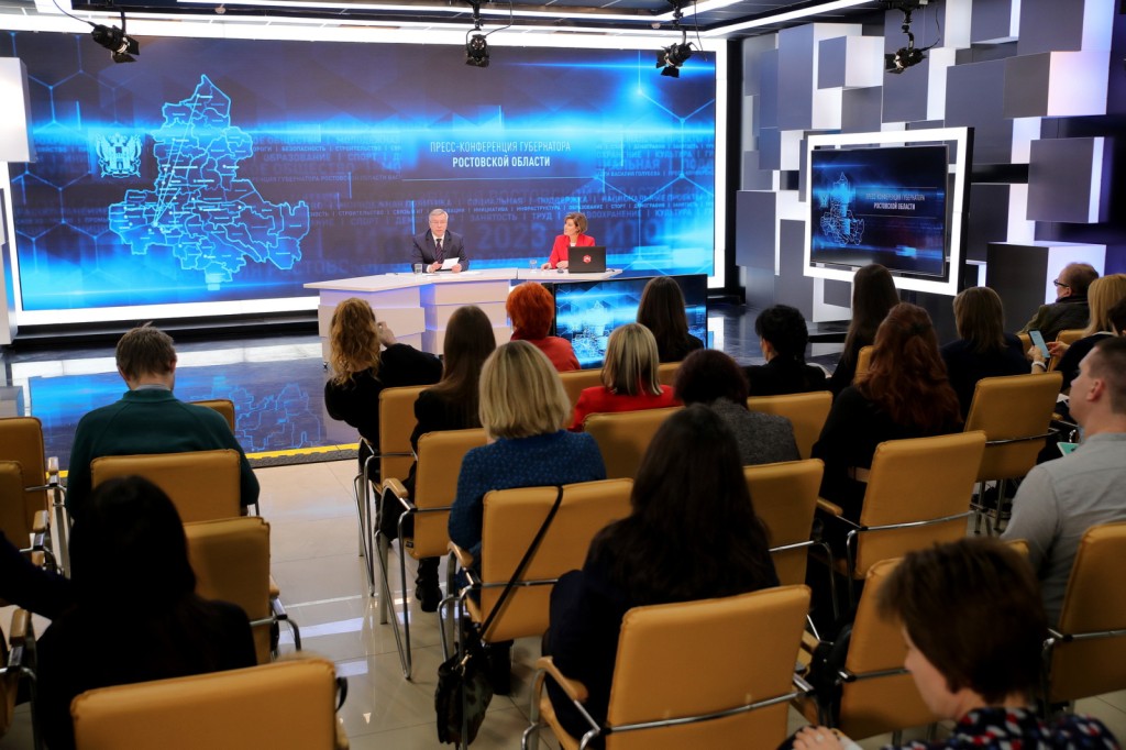 Журналисты общались с главой региона в телестудии компании «Дон 24», представители муниципальных изданий выходили на связь из студий в городах и районах Ростовской области. Велась прямая трансляция на нескольких медиа-платформах, а также на областном и федеральном телеканалах.