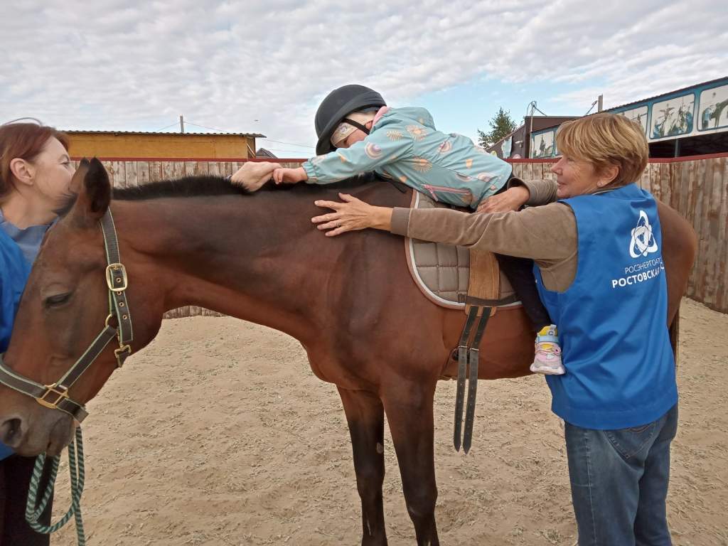 – Сердце нашего центра бьется только благодаря Ростовской атомной станции и личному участию директора Андрея Александровича Сальникова в судьбе «Доброй лошадки», – говорит Татьяна Горчанюк. – С помощью Ростовской АЭС мы можем содержать центр, платить зарплату сотрудникам, развиваться. На учете центра стоит порядка 500 ребятишек, которые по рекомендациям врачей проходят у нас курсы лечебной верховой езды.