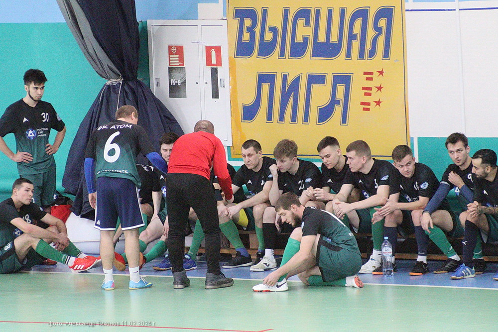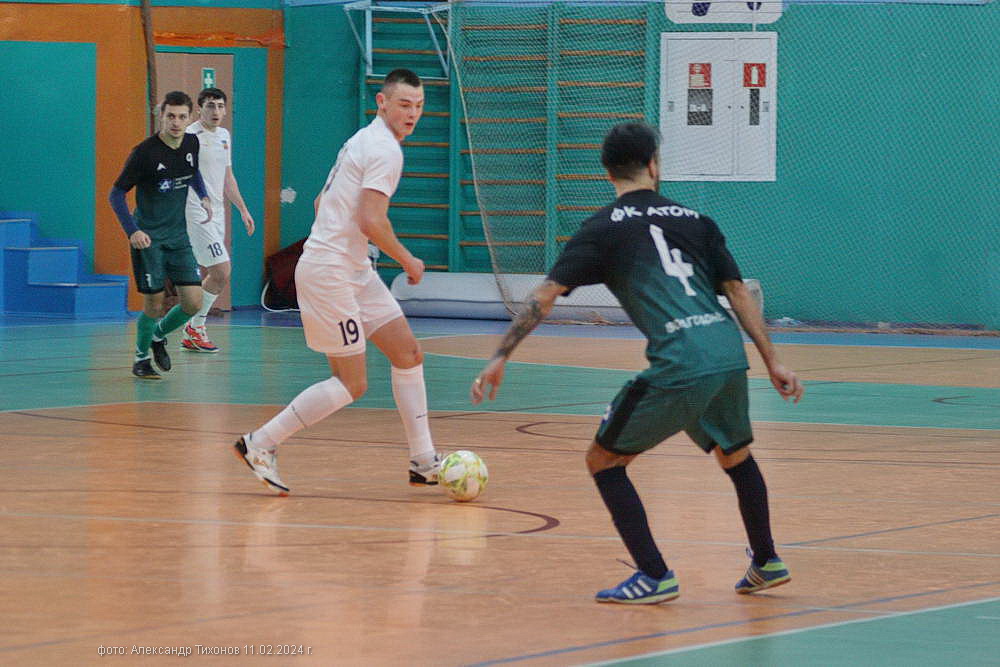 Первыми на площадку вышли команды «Волгодонск-2» и «Атом». Игра прошла с небольшим преимуществом волгодончан, которые в первом тайме забили первым мяч. Во втором тайме несогласованные действия игрока и вратаря «Атома» привели ко второму пропущенному голу. Затем атомщики попытались отыграться с помощью своего вратаря, который выходил в качестве пятого полевого игрока. Но в итоге футболисты «Волгодонска» сумели поразить дальним ударом пустые ворота. В итоге победа у волгодончан — 3: 0.