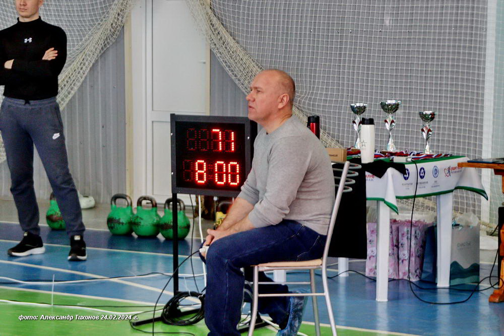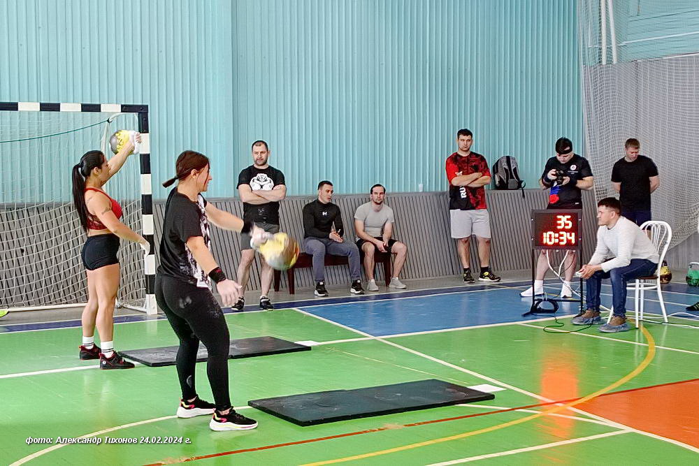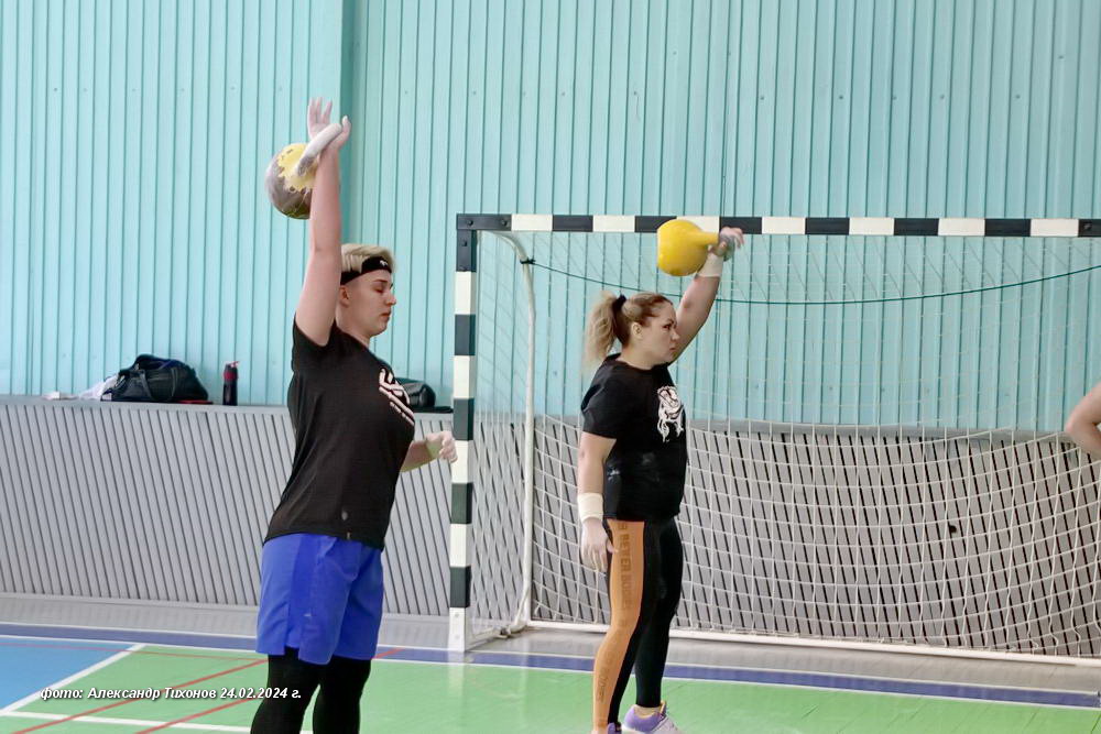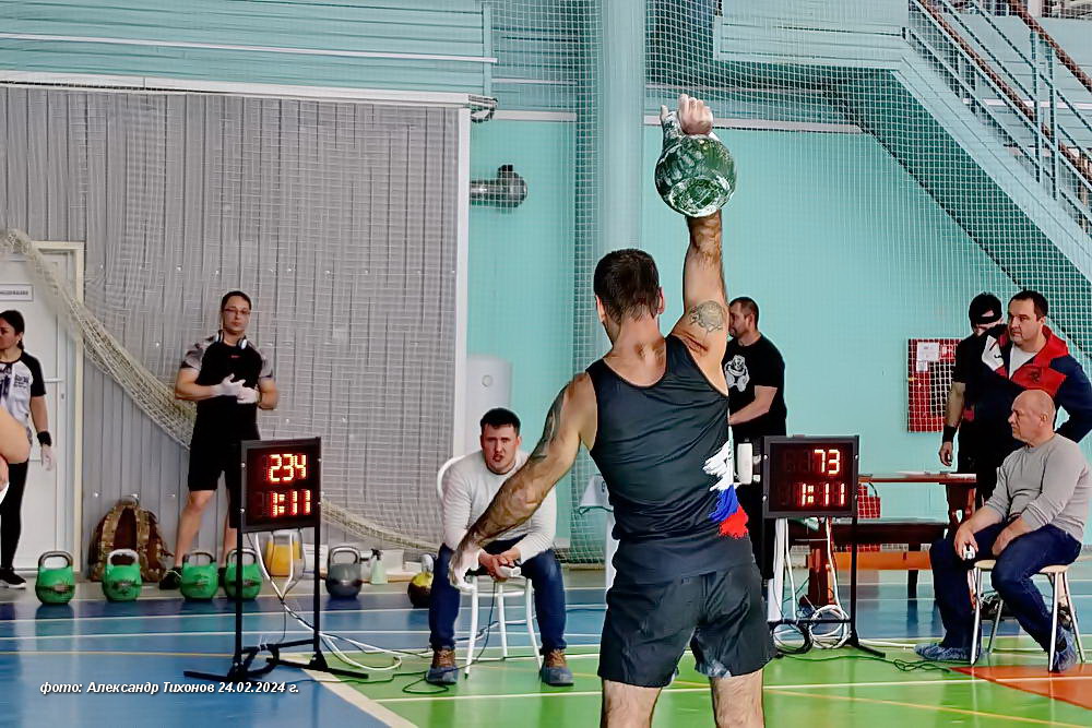 Открыла соревнования тройка силачей, в которой отличился работник ОДМ и ТК Руслан Абясов. Он за 12 минут поднял гирю весом 24 кг. 257 раз, установив при этом свой личный рекорд. Затем на помост вышли женщины — А.Новосёлова и В.Волкова. Здесь отличилась Новосёлова. Её результат 283 раза за 12 минут, вес гири был поменьше — 16 кг. Волкова показала результат 210 подъёмов.