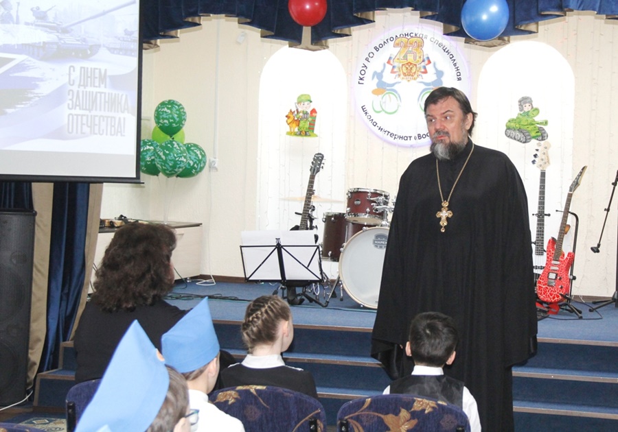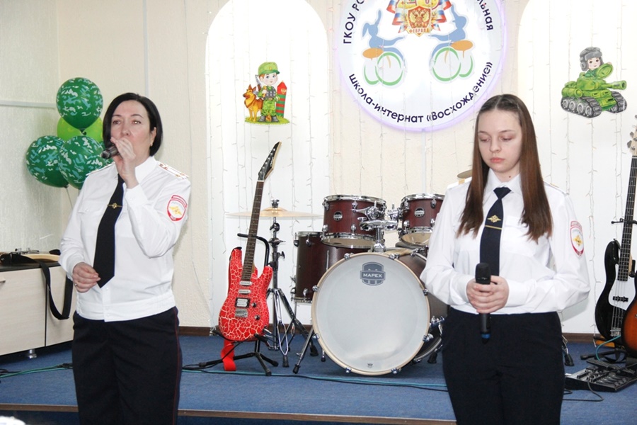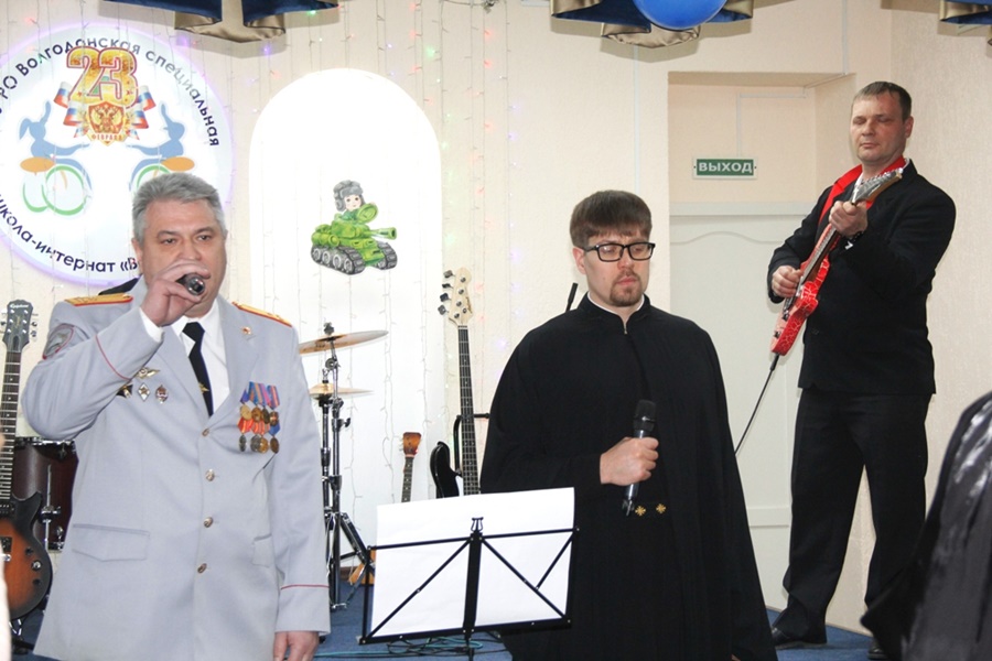 Накануне Дня защитника Отечества в школе-интернате «Восхождение» состоялся торжественный концерт. К ребятам пришли гости – председатель Волгодонской городской Думы — глава города Волгодонска Сергей Ладанов, начальник ВФ ФГКОУ ВО РЮИ МВД России Дмитрий Кугут вместе с преподавателями и воспитанниками вуза, настоятель церкви Святой Елисаветы отец Михаил и священнослужители Волгодонской епархии.