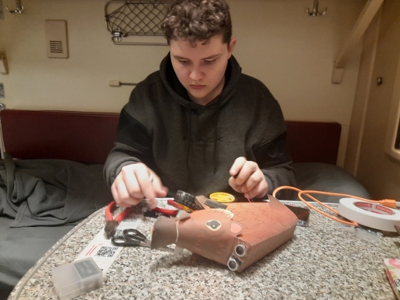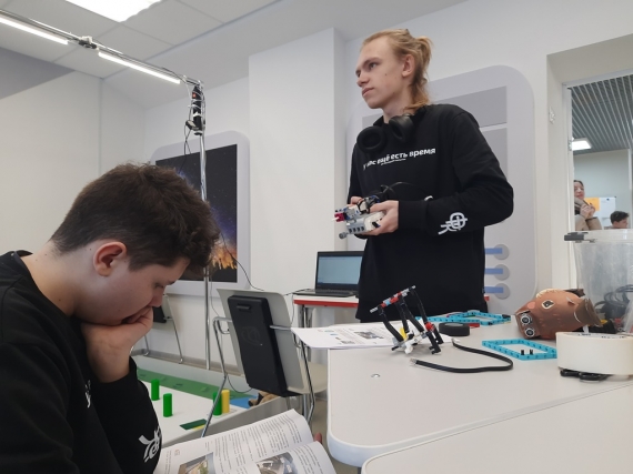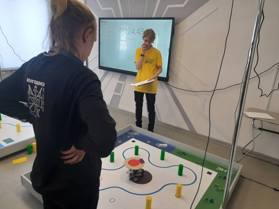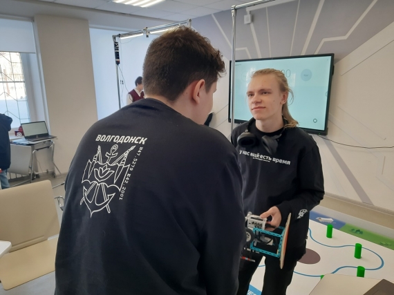 Представлять Волгодонск на всероссийских робототехнических соревнованиях в Саратовском региональном центре одарённых детей «Галактика 64» ездила команда в составе: Александр Бильченко – педагог, тренер и учащиеся Егор Даричев, Марк Черепанов. Еще один член команды, Артём Новиков, участвовал в соревнованиях дистанционно — подключался к защите проекта и выступал по видеосвязи.