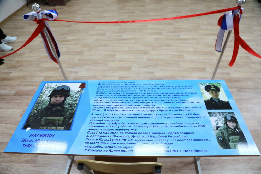 29 февраля 2024 года в Волгодонске прошло торжественное открытие «Парты героя» в рамках патриотического проекта партии «Единая Россия». Мемориальная парта появилась в память о выпускнике лицея «Политэк» – Иване Нагибине.