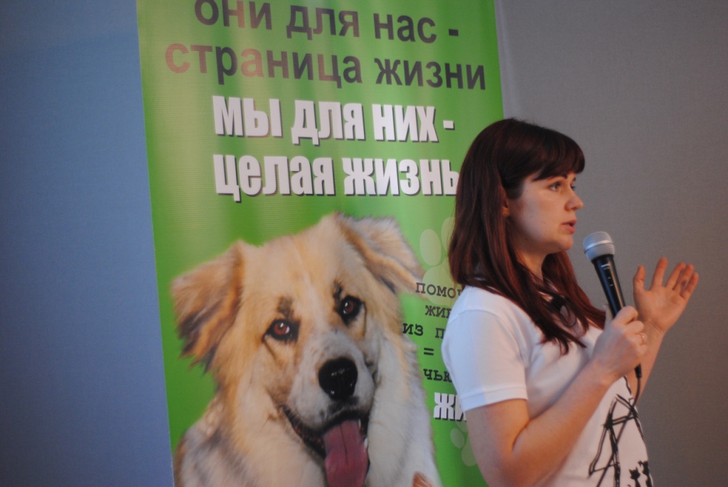 «Звездой» семинара стал один из самых доброжелательных подопечных организации «Делай добро» — молодой пес по кличке Патрик. Он, как и вся без малого сотня обитателей Центра временного содержания животных, нуждается в постоянном доме и новых хозяевах. А также совсем «новенький» его обитатель – полуторамесячный щенок Ханна.