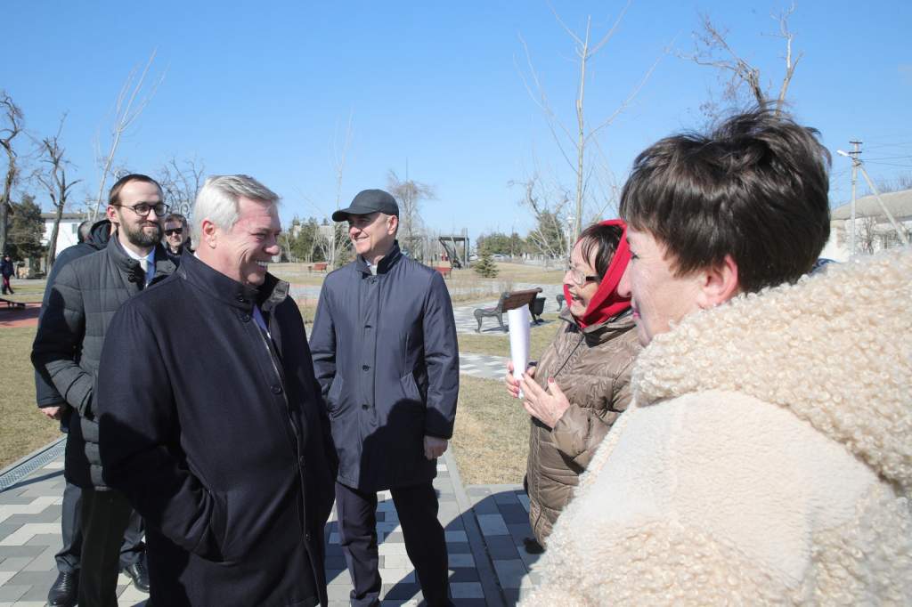 Перед началом заседания губернатор побывал на двух объектах благоустройства в Цимлянске. По проекту «Формирование комфортной городской среды» национального проекта «Жилье и городская среда» на обновление скверов «Семейный» и «Спортивный» было направлено почти 66 млн рублей. Всего было обустроено почти 12 тысяч кв. метров общественной территории.