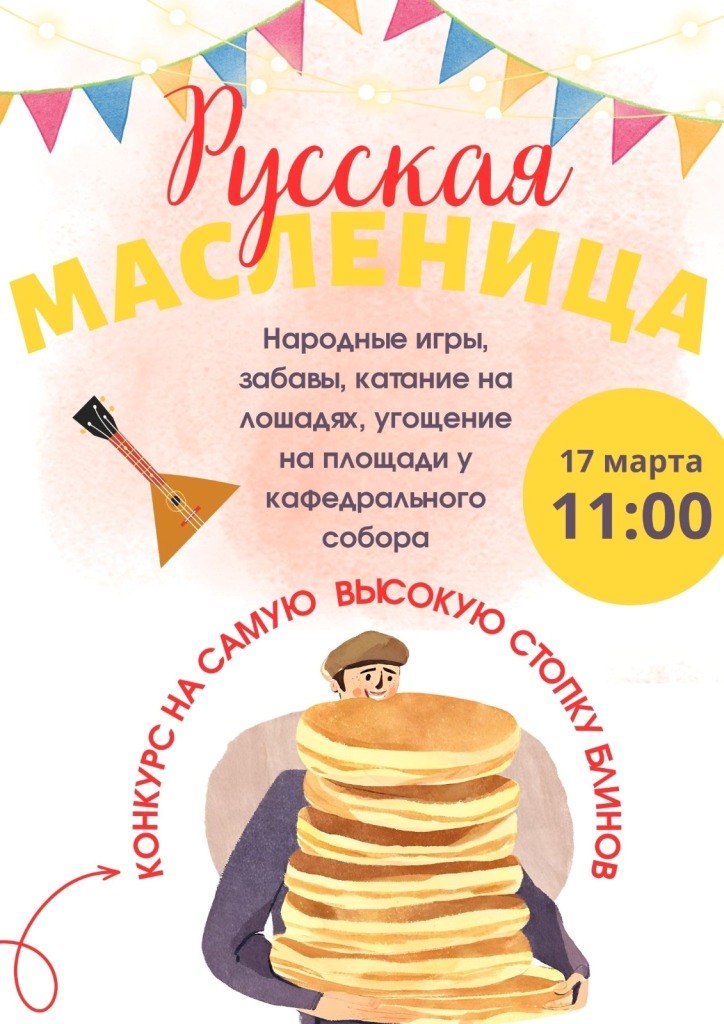 В рамках праздника будет проведен конкурс на самую высокую стопку блинов. Для участия в конкурсе ваши стопки нужно передать нашим сестрам милосердия до начала поздней Божественной литургии (до 9:00). Сестры будут ждать вас в нижнем храме в специально отведенном месте.