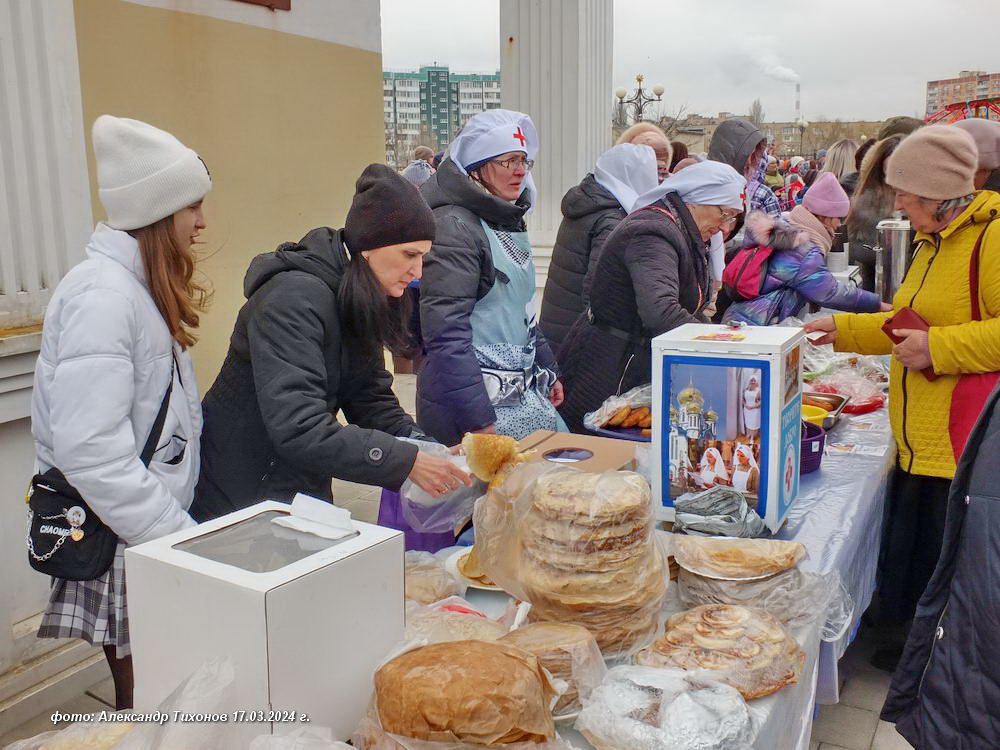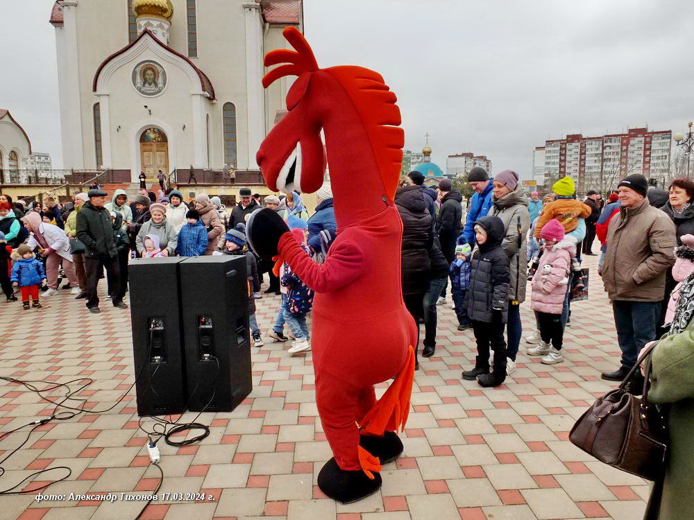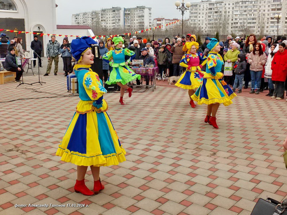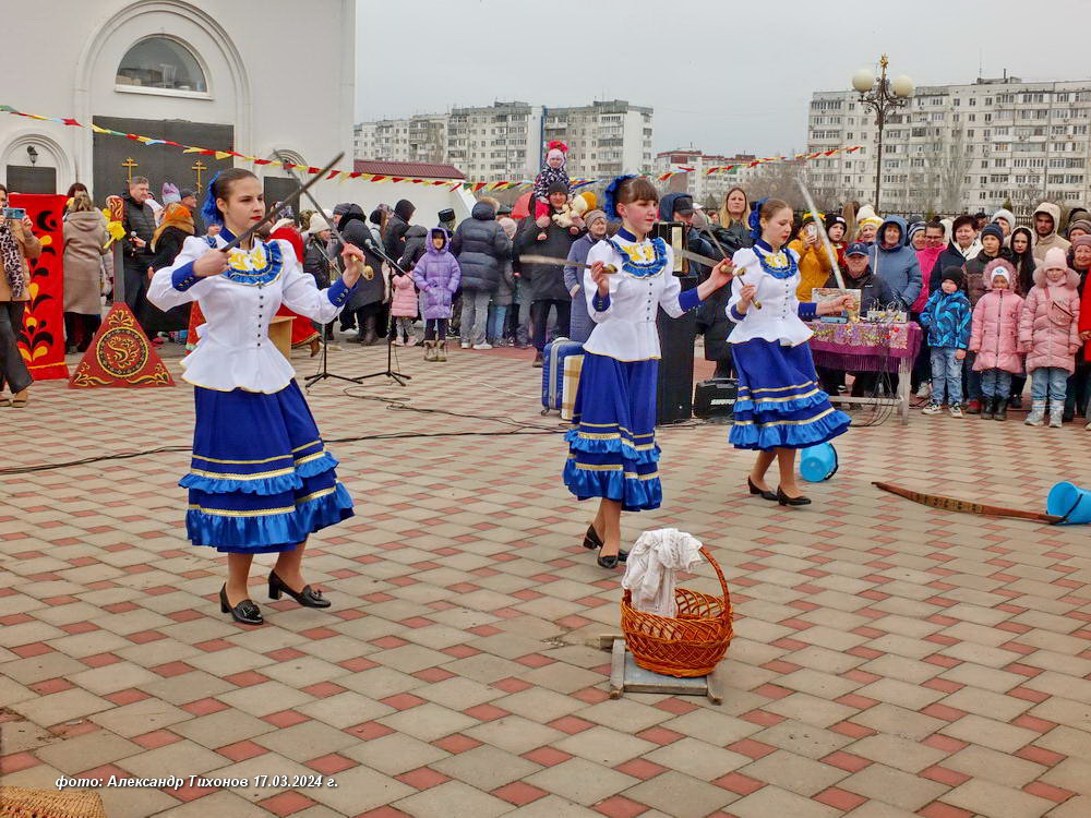 Более массовые гуляния прошли на соборной площади Храма Рождества Христова в Молодёжном парке — праздник организовала епархия Волгодонская и Сальская. Здесь организовали развлекательную программу с конкурсами и блинами, с песнями и танцами самодеятельных артистов, но без огнеопасного «язычества» — без сжигания чучела Масленицы. Судя по фото с места праздника, настроения это никому не испортило.
