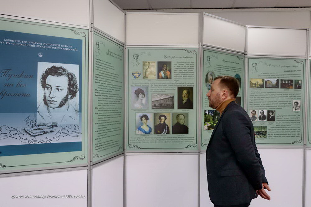 В рамках Всероссийской акции «Пушкинские дни» Волгодонской эколого-исторический организовал выставку «Пушкин на все времена». Эта выставка является передвижной. Она будет экспонироваться на базах культурных и образовательных учреждений не только нашего города, но и близлежащих населённых пунктов.