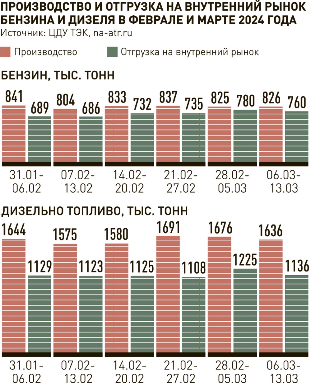 По словам Симонова, по дизельному топливу проблем для обеспечения внутреннего рынка нет. Его в 2023 году ушло 37% от объемов производства, у нас есть большой запас. Бензина на экспорт уходило 10%. Проблемы могут возникнуть ближе к сезону отпусков, но к тому моменту должны успеть все исправить, к тому же с марта действует запрет на экспорт бензина.